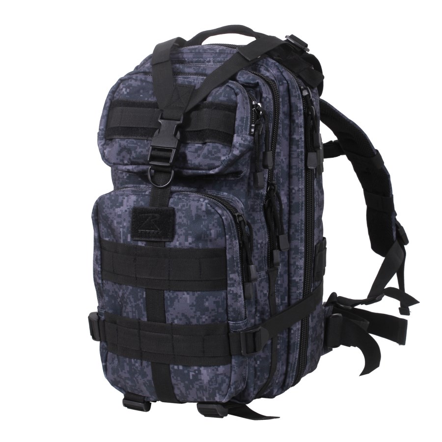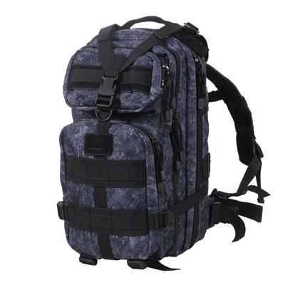 Petit sac à dos d'assaut avec système MOLLE, adapté aux opérations d'une à deux journées. Nombreuses poches et compartiments de rangement, y compris un espace de rangement pour une poche à eau. Matériau : polyester 600D, volume : environ 25 litres. Plus d'informations