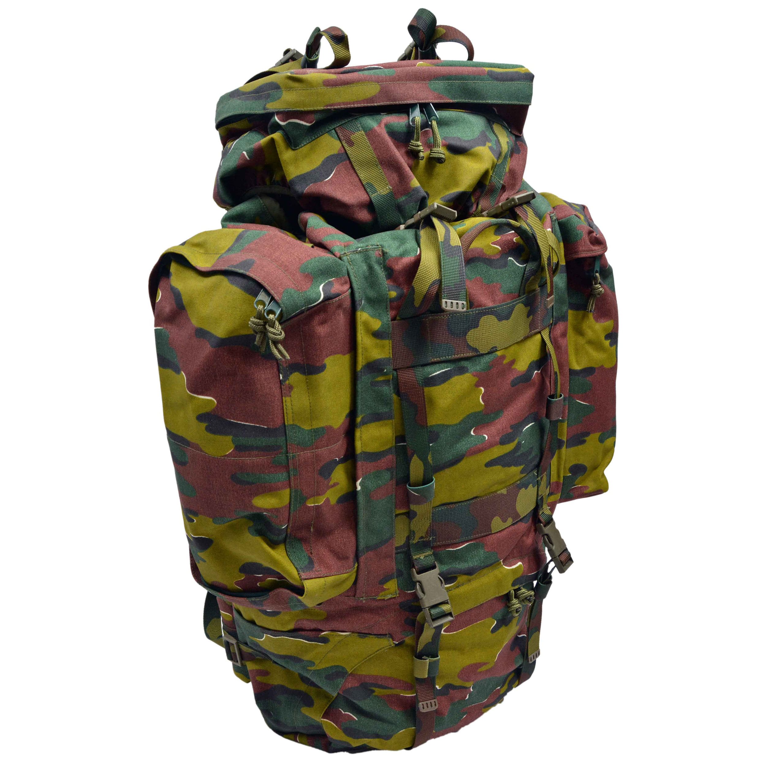 Sac à dos BERGEN original utilisé par l'armée belge. Sac à dos complet particulièrement adapté aux longues randonnées où un grand volume est prioritaire. Grande poche principale zippée recouverte d'un rabat avec fermeture à boucles FASTEX. Plus d'informations