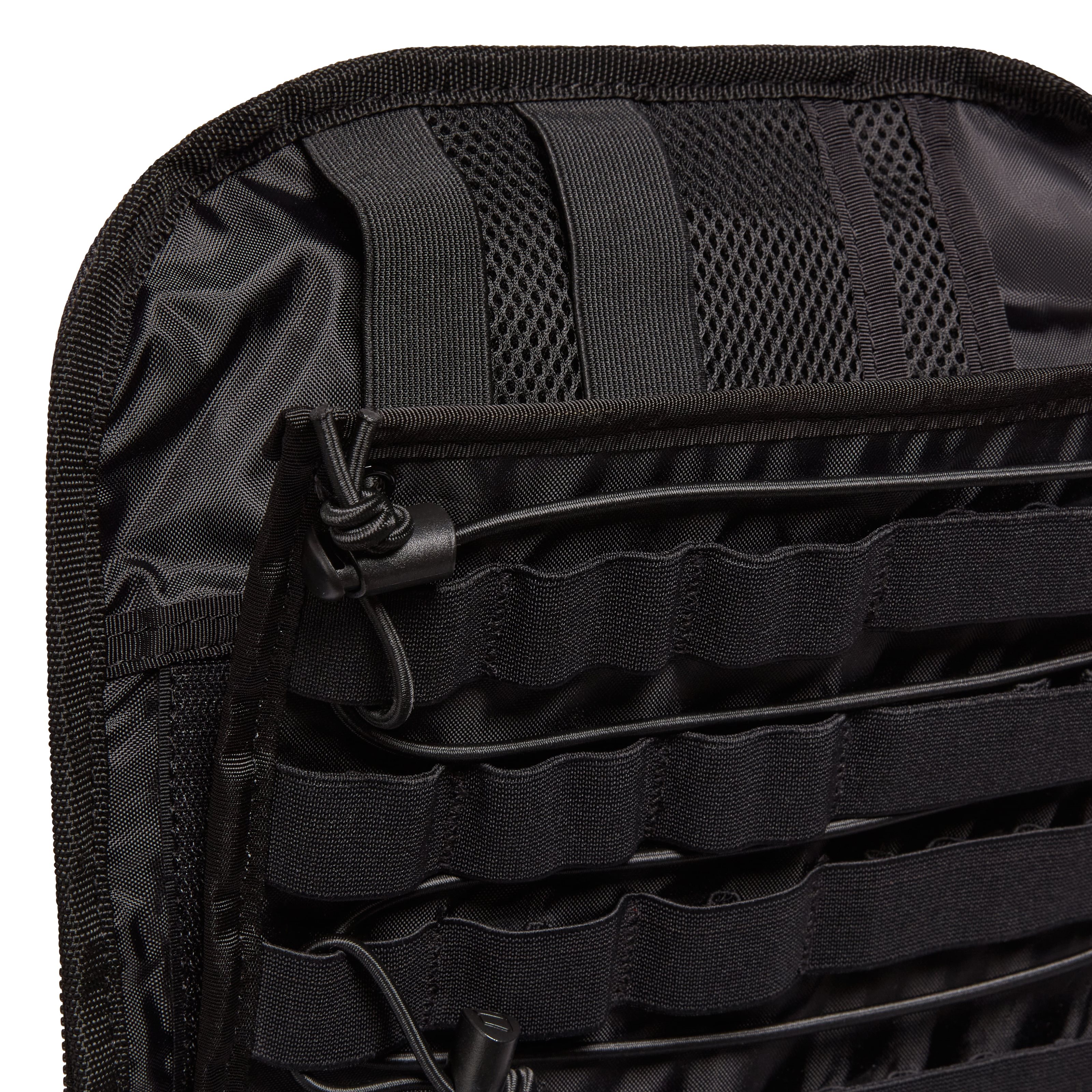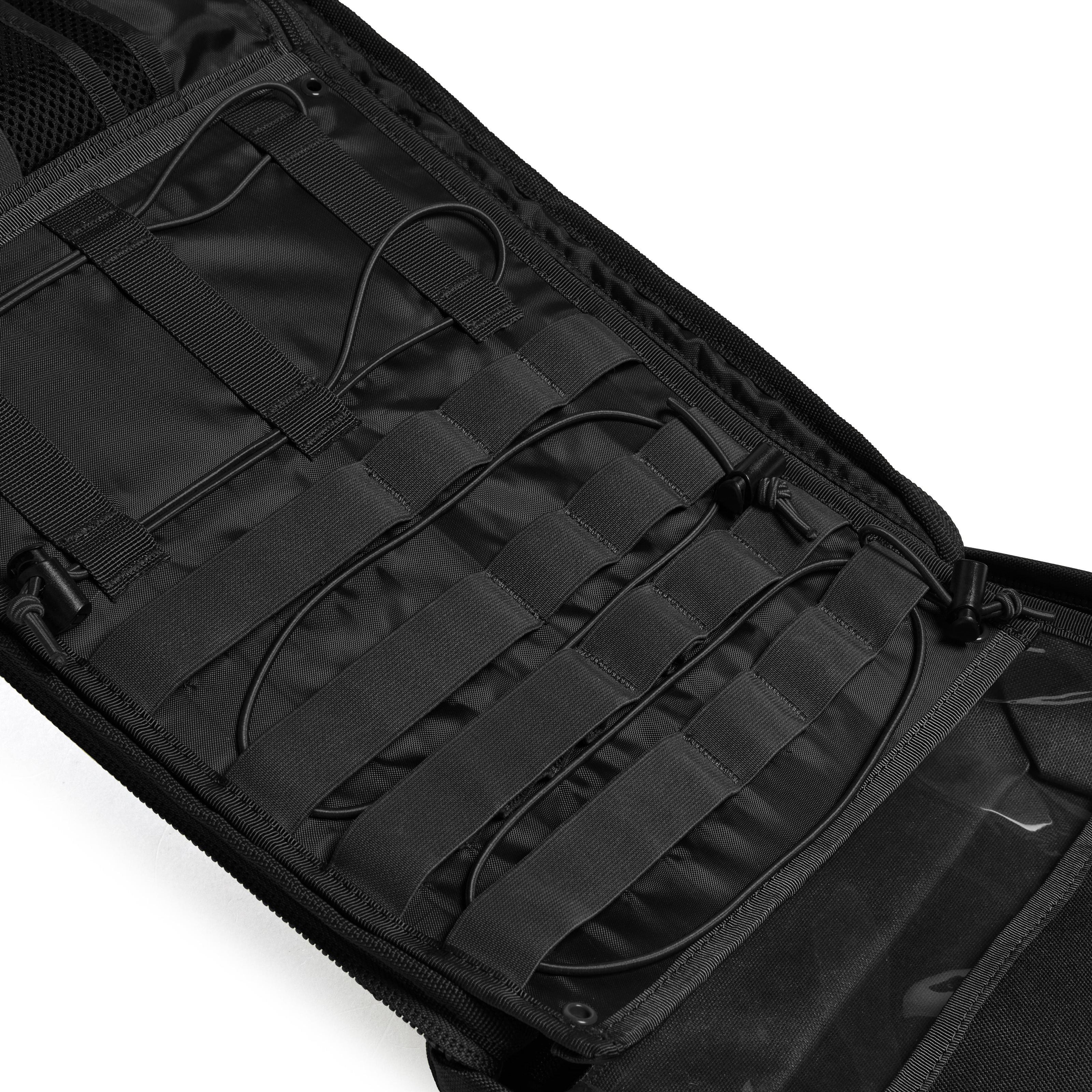 Le sac de taille M offre de nombreuses poches intérieures et un panneau avec des boucles élastiques pour faciliter l'organisation de l'équipement. Toutes les poches et le panneau sont fixés par du velcro, ce qui permet de les manipuler librement. Les dimensions sont d'environ 45 x 30 x 7 cm.