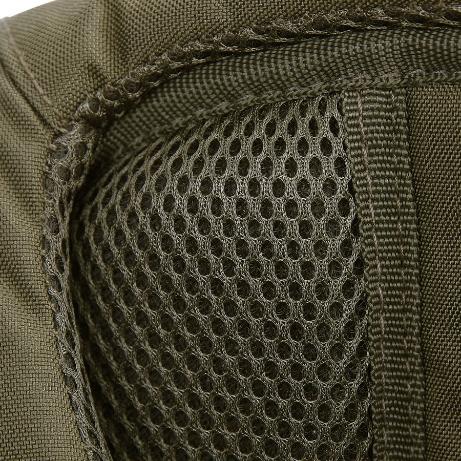 Le système de portage du sac à dos est conçu pour offrir un confort maximal lors d'une utilisation prolongée. Le dos est généreusement rembourré de maille 3D, tout en conservant un canal central pour une meilleure ventilation. Les bretelles sont réglables en hauteur, anatomiquement profilées, agréablement rembourrées et équipées de passe-câbles élastiques pour faire passer le tuyau de la poche à eau. De plus, elles sont dotées d'une fixation MOLLE/PALS. La sangle pectorale est élastique, fermée par une boucle en plastique FASTEX et réglable en hauteur. La ceinture lombaire est constituée d'une sangle solide sans rembourrage et se ferme à l'aide d'une boucle en plastique.