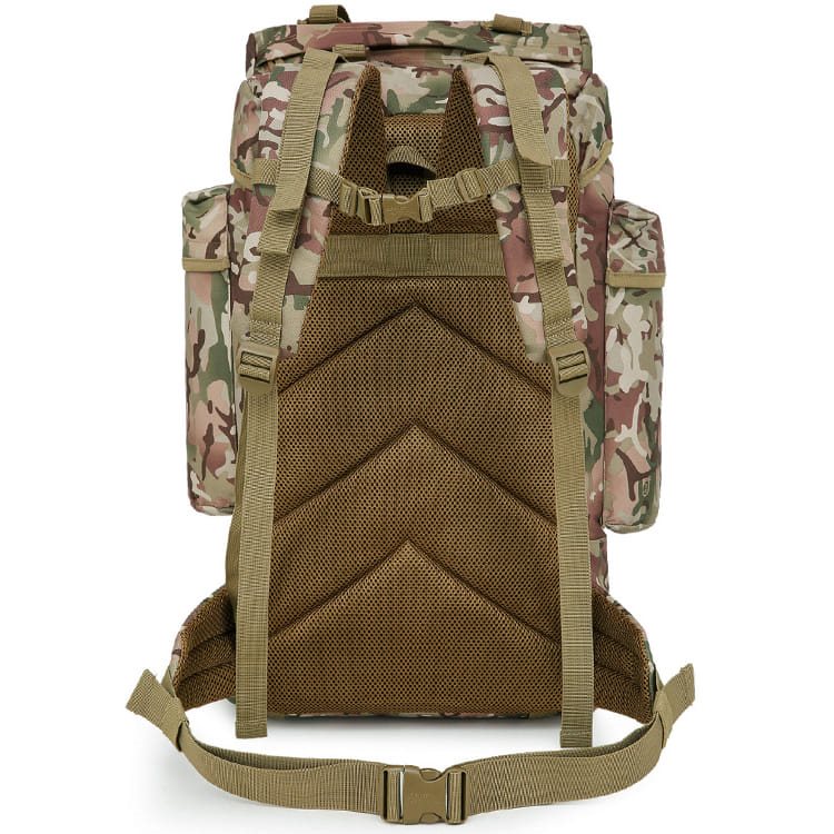 Sac à dos robuste fabriqué en matériau résistant 600D Tac-Poly. Il est doté d'un système de portage confortable, de deux poches latérales, d'une grande poche avant et d'un compartiment séparé pour ranger un sac de couchage. Plus d'informations