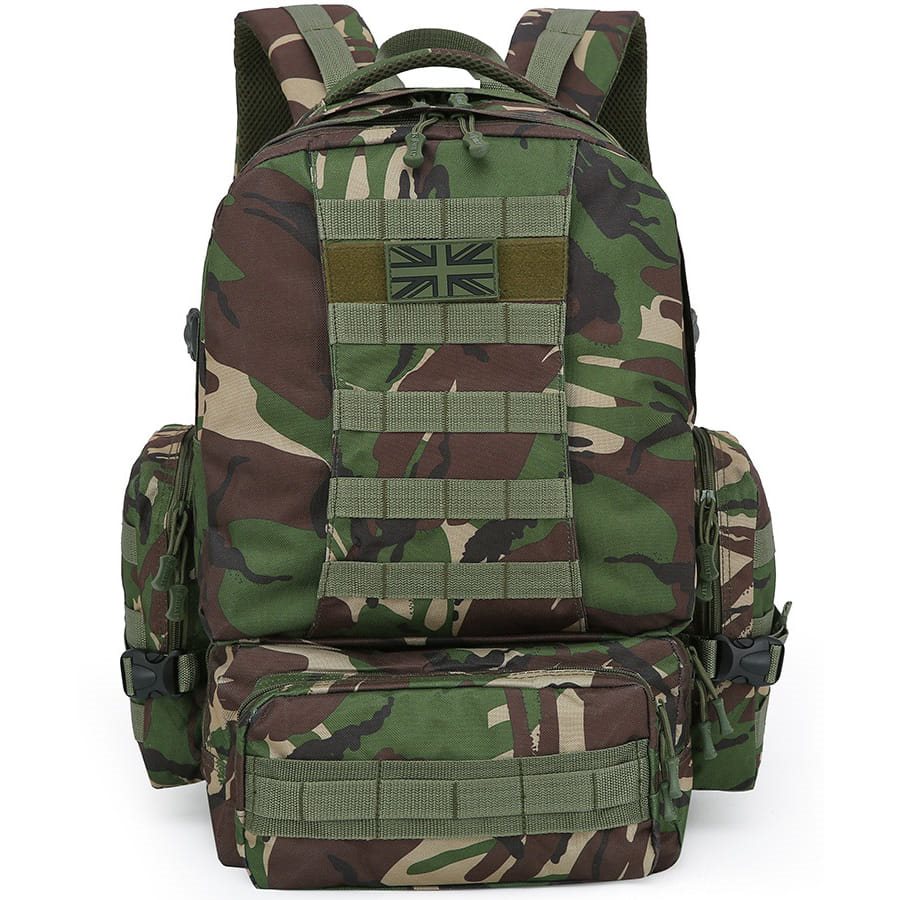 Sac à dos d'expédition compatible MOLLE/PALS, fabriqué dans un matériau résistant. Il est équipé d'un système dorsal confortable, de deux poches latérales, de trois poches avant et d'un compartiment principal spacieux. Plus d'informations