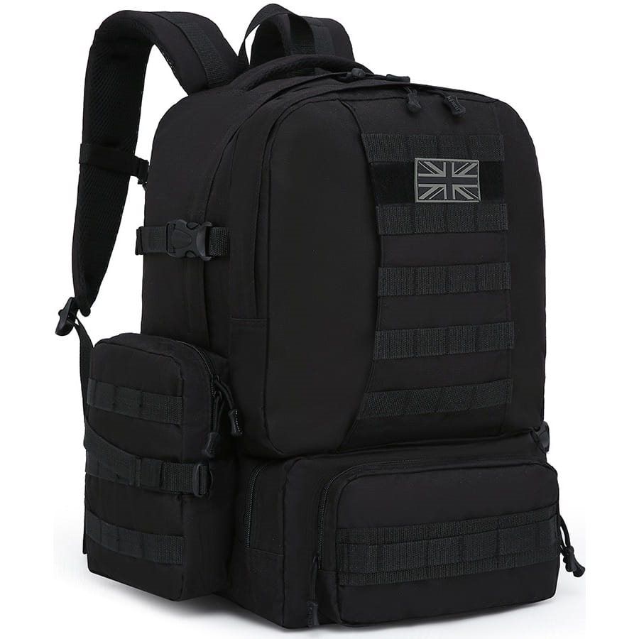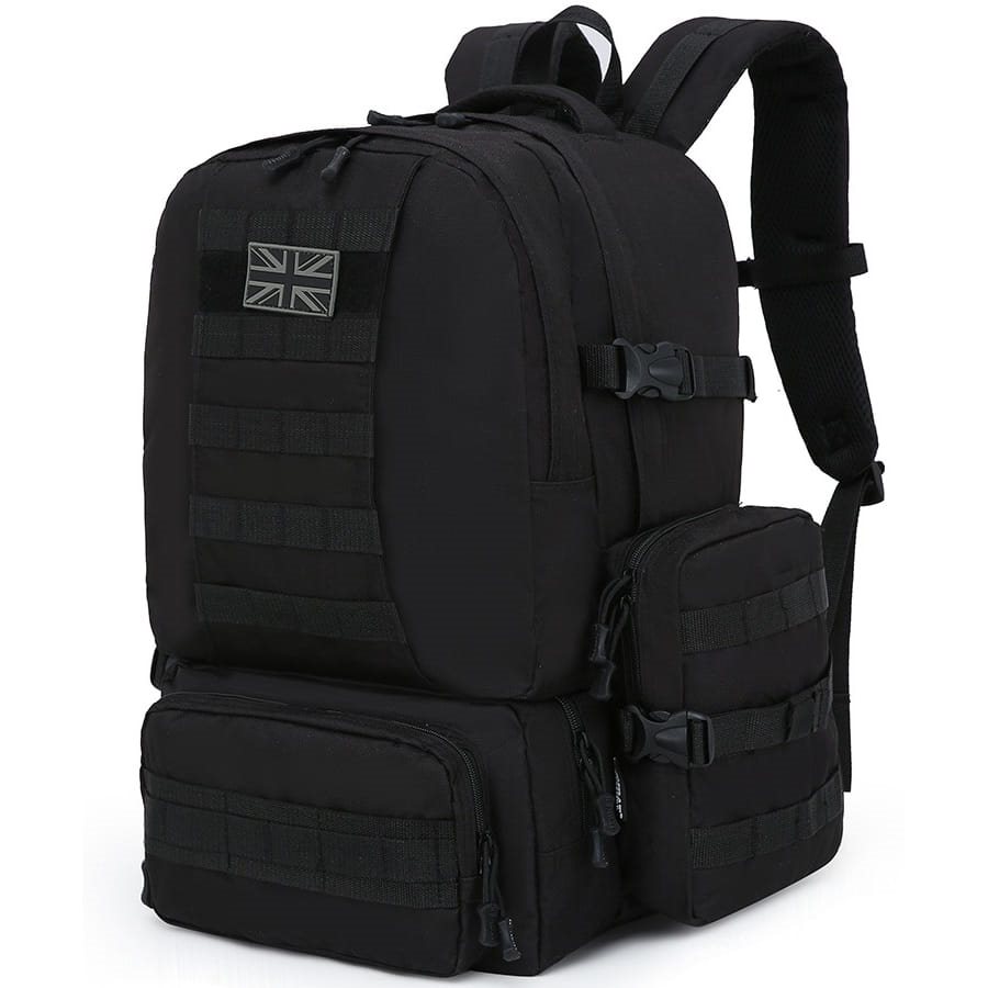 Sac à dos d'expédition compatible MOLLE/PALS, fabriqué dans un matériau résistant. Il est équipé d'un système dorsal confortable, de deux poches latérales, de trois poches avant et d'un compartiment principal spacieux. Plus d'informations