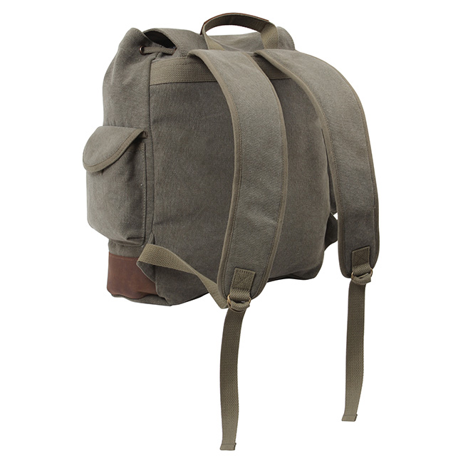 Sac à dos classique de petite taille en toile de coton épaisse au design vintage, agrémenté de détails en cuir et en laiton. Accessoire élégant et pratique pour tout randonneur qui se respecte.