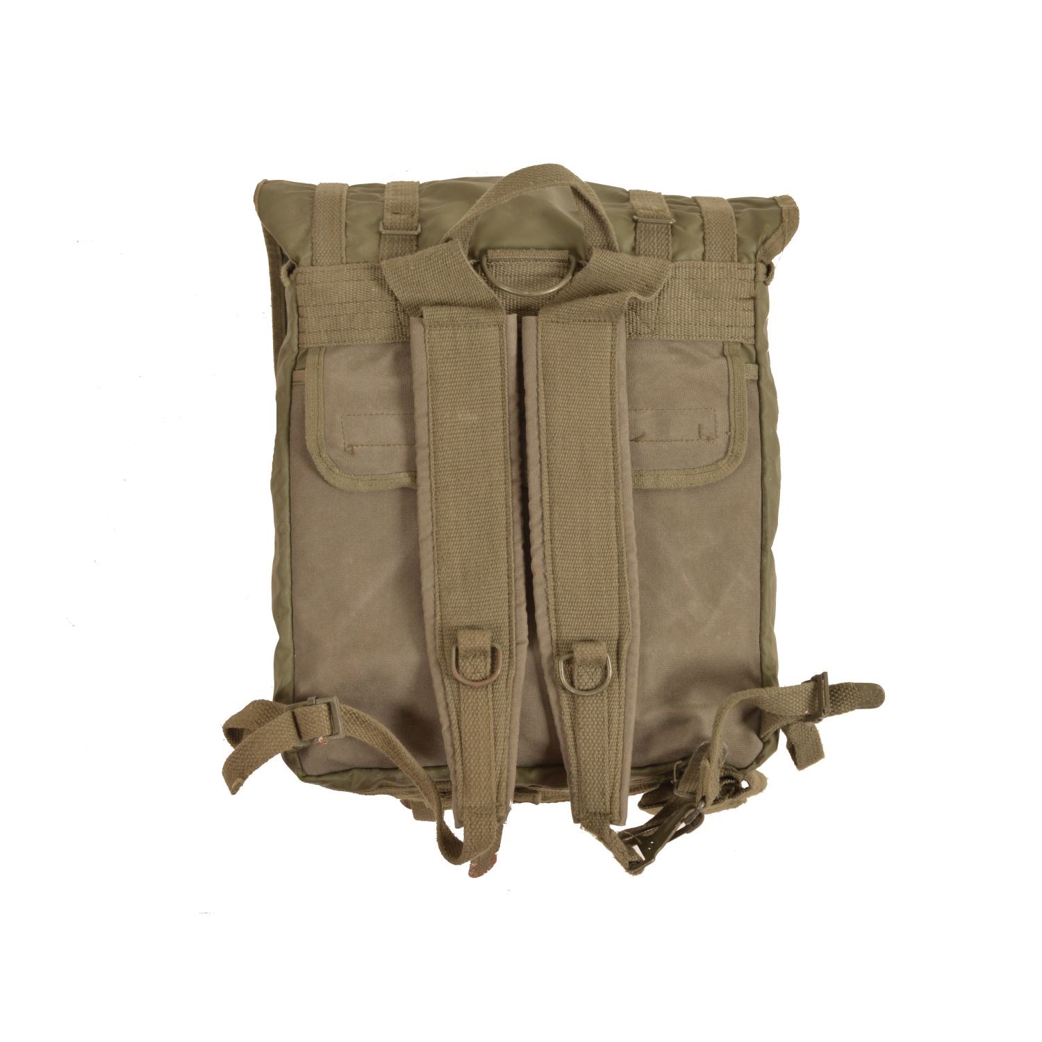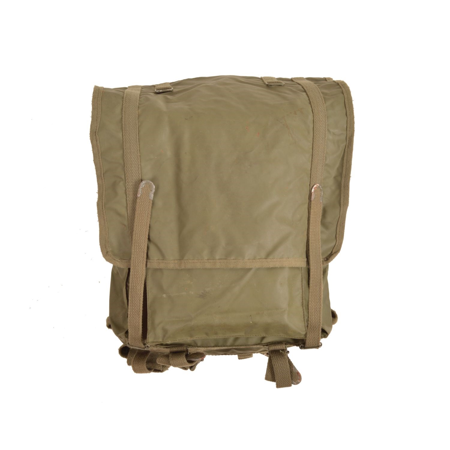 Petit sac à dos original de l'armée française, modèle F1. Fond en caoutchouc, côtés et rabat caoutchoutés. Dimensions : 33 x 28 x 8 cm. Plus d'informations