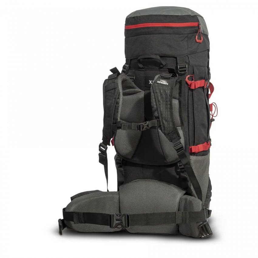 Le système dorsal est réglable en hauteur et se caractérise par un rembourrage solide et respirant, que vous apprécierez particulièrement lorsque vous transportez des charges très lourdes. Les bretelles sont anatomiquement incurvées, réglables en longueur et équipées d'une sangle pectorale réglable en hauteur avec une boucle en plastique. La ceinture abdominale est équipée d'une poche pratique pour les petits équipements et se ferme à l'aide d'une boucle. Les côtés sont équipés de sangles de compression et de poches en filet. Le rabat du sac à dos est réglable en hauteur et muni d'une poche relativement grande. Le sac à dos peut être rempli par le haut et par le bas. À l'intérieur du compartiment principal, vous trouverez une cloison qui peut être retirée à l'aide d'un cordon avec frein. Le sac à dos avant est fixé à l'aide d'une fermeture éclair, dispose de ses propres sangles de transport et de deux petits compartiments.