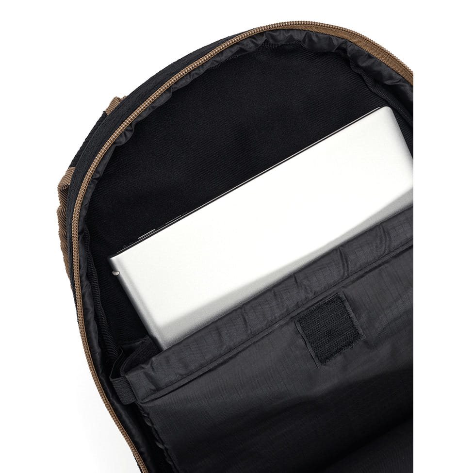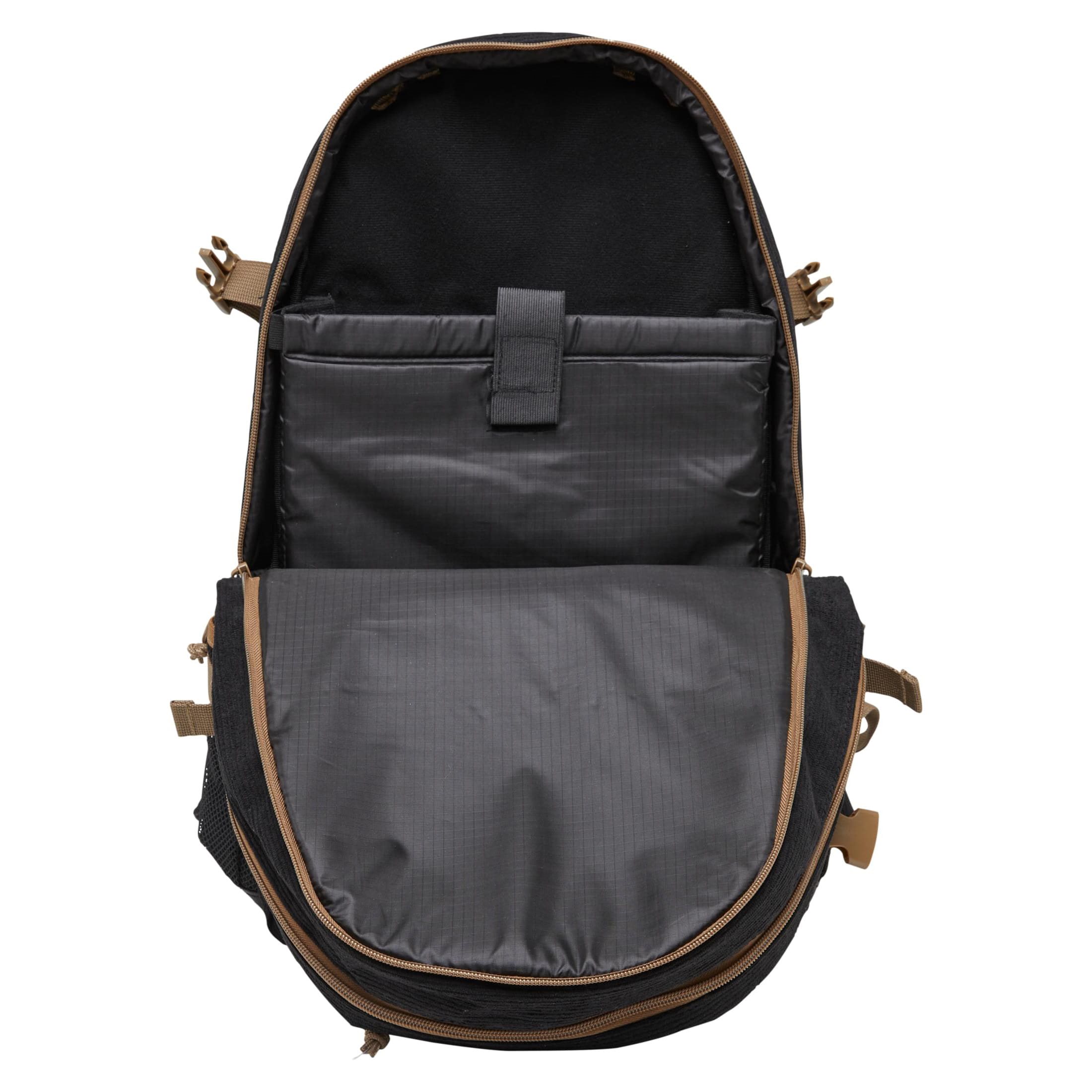 Les bretelles sont réglables en longueur, rembourrées avec un filet 3D et équipées d'une sangle pectorale à boucle en plastique. Le sac à dos dispose également d'une ceinture lombaire non rembourrée à boucle FASTEX. Sur les côtés, vous trouverez deux sangles de compression et des poches destinées au transport de bouteilles ou à la fixation d'équipements supplémentaires tels que des bâtons de randonnée, etc. La partie avant du sac à dos est équipée d'une poche supérieure pour les petits objets, d'une poche plus grande avec un organiseur intérieur et de deux sangles de fixation avec boucle en plastique. Les deux compartiments principaux sont accessibles par des fermetures éclair à double sens, la poche avant n'a pas de compartiment intérieur, la poche arrière contient un compartiment rembourré pour ordinateur portable.