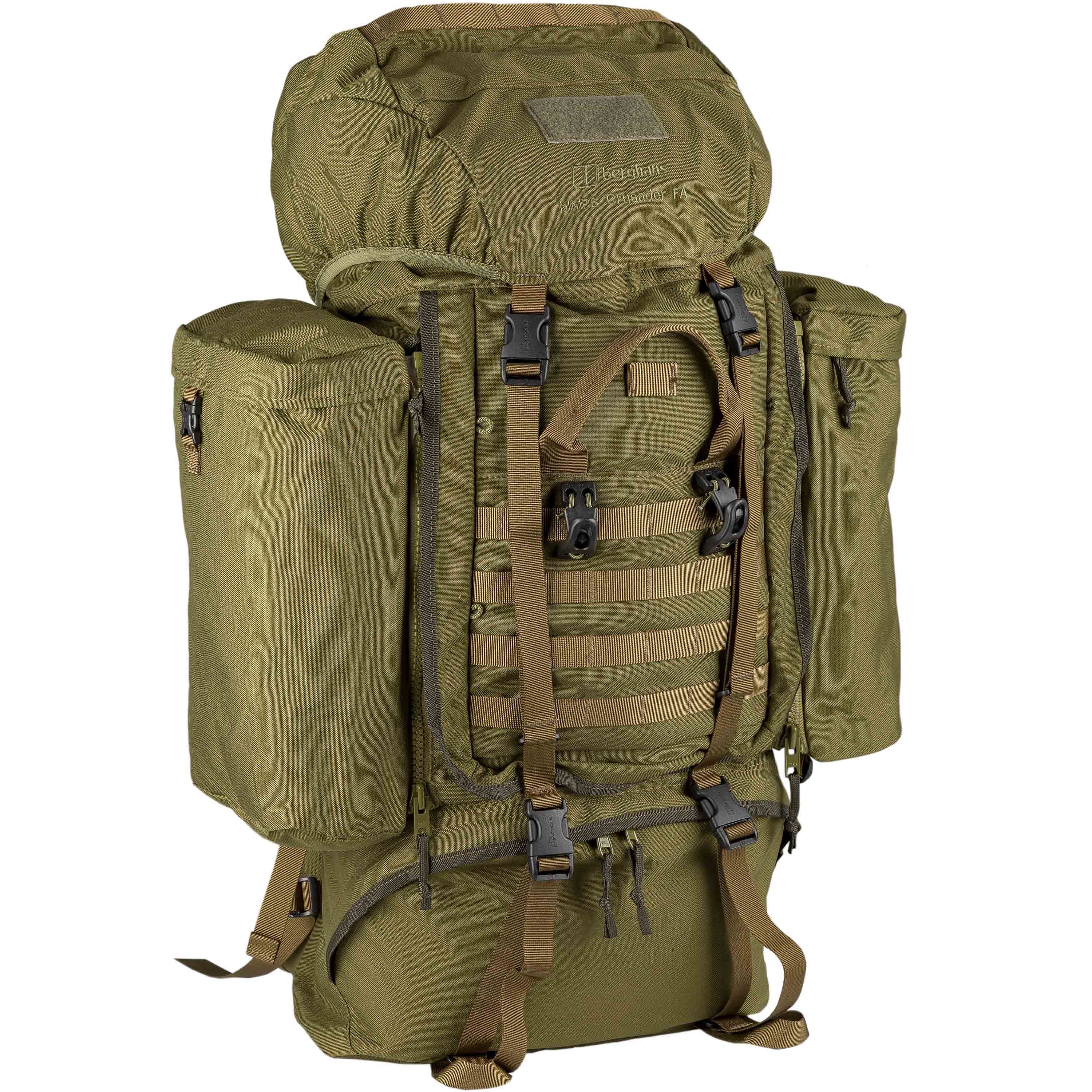 Sac à dos d'expédition résistant à chargement frontal de la gamme MMPS de la célèbre marque BERGHAUS, d'une capacité totale de 110 litres. Le sac à dos est fabriqué en Armadura 1000D, un matériau équivalent au Cordura classique. Le CRUSADER peut être considéré comme le produit phare de la marque et convient aussi bien à un usage militaire qu'à des expéditions.