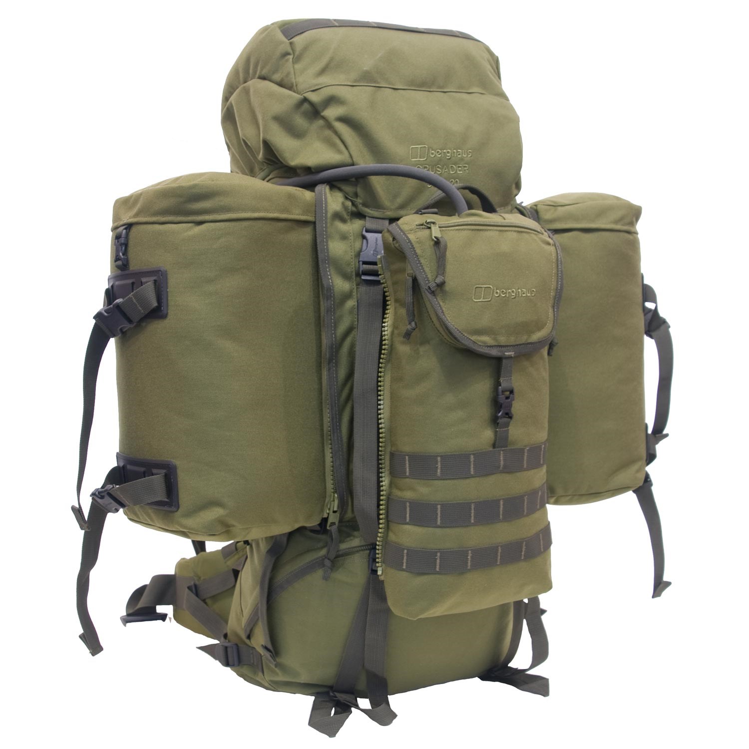 Pour les amateurs de style militaire, Berghaus est connue comme un important fournisseur de sacs à dos militaires. Elle a conçu et fourni les premiers sacs à dos pour l'armée britannique pendant la guerre des Malouines et, aujourd'hui encore, on trouve des sacs à dos Berghaus dans l'équipement des armées d'autres pays, tels que l'Australie, la Belgique, la France, l'Allemagne, le Luxembourg, les Pays-Bas et la Norvège.