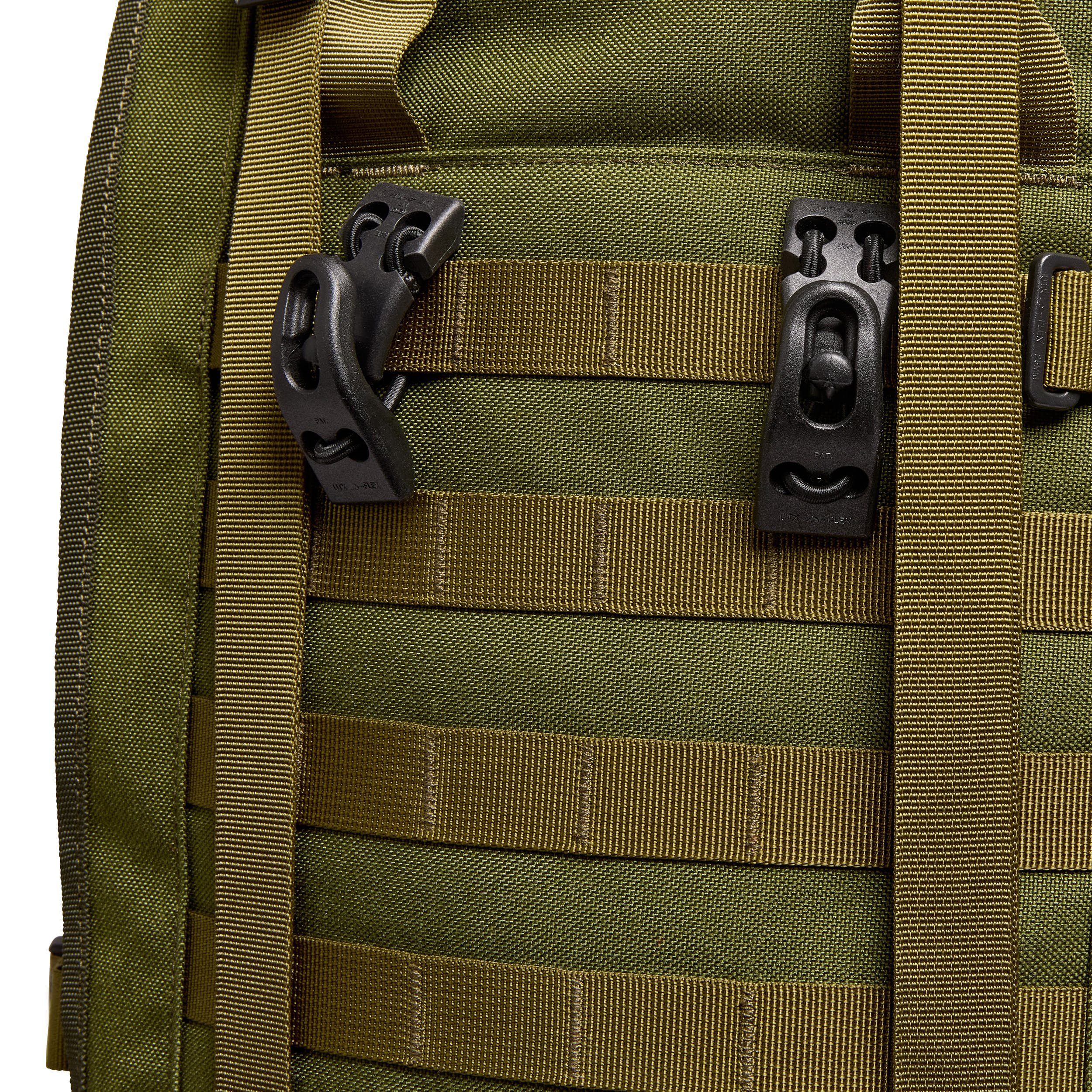 Le sac à dos est livré avec deux poches latérales amovibles MMPS (d'une capacité de 10 litres chacune), fixées à l'aide de deux fermetures éclair robustes. Chaque poche peut être utilisée comme un simple sac à dos de 10 litres ou peut être attachée à une autre pour former un sac à dos de 20 litres. Le sac à dos est livré avec des sangles de transport pour ces poches.