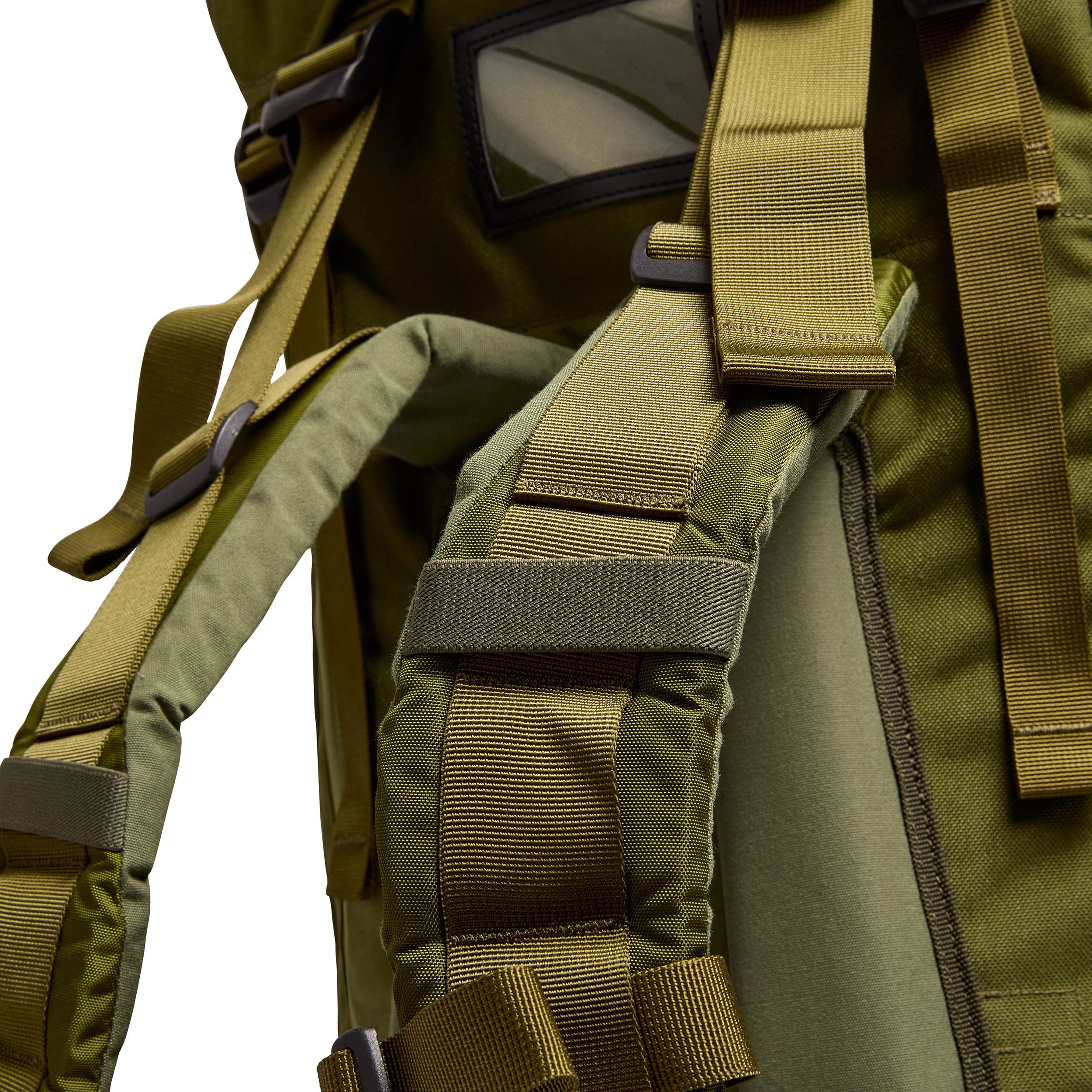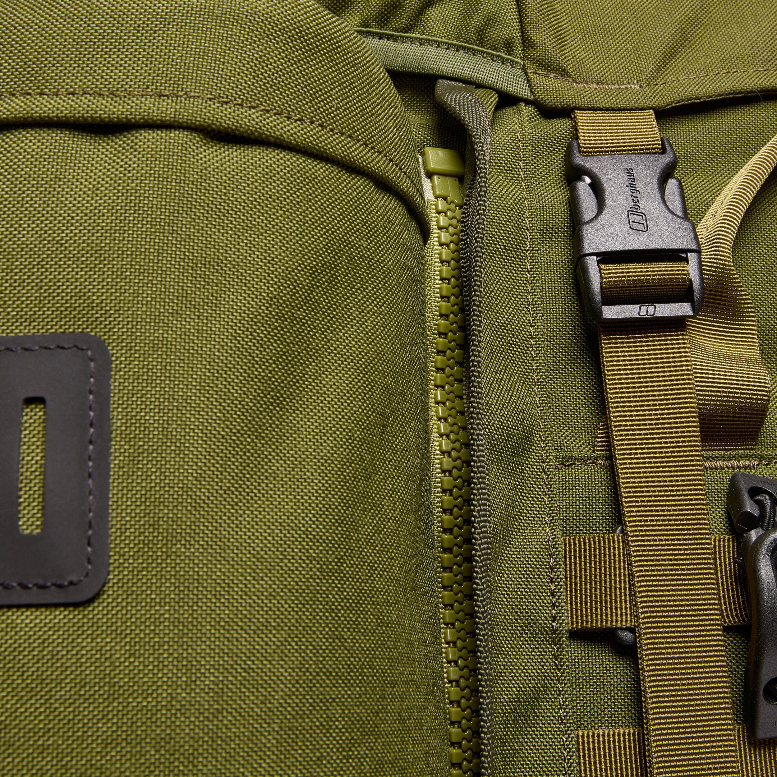 Il s'agit d'un sac à dos d'expédition classique avec remplissage par le haut et par le bas et possibilité de diviser le compartiment principal en deux parties grâce à un collier de serrage interne. L'entrée supérieure est équipée d'un rabat réglable en hauteur avec une poche intérieure et extérieure et des passants pour les sangles d'attache. L'entrée inférieure est sécurisée par une fermeture éclair à double sens recouverte d'un rabat. À l'intérieur du compartiment principal du sac à dos se trouve un compartiment pour une poche à eau avec une ouverture des deux côtés et deux boucles permettant de fixer des accessoires de la collection FLT (Fight Light Pack System). La face avant du sac à dos est équipée d'un système d'attache PALS/MOLLE, de boucles pour piolets et de quatre œillets en plastique pour passer des sangles d'attache supplémentaires. La deuxième poignée de transport, située au-dessus du système d'attache modulaire, facilite considérablement la manipulation du sac à dos lorsqu'il est plein. Sur les côtés du sac à dos (sous les poches latérales) se trouvent des sangles d'attache enfilées dans des boucles en caoutchouc textile.