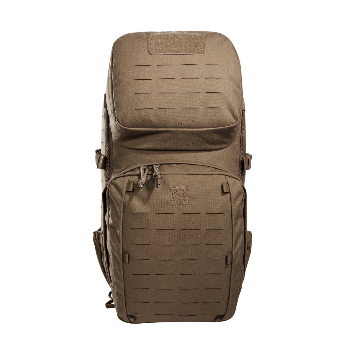 Avec sa configuration et son volume de 22 litres, le sac à dos Modular Combat appartient à la catégorie des sacs à dos d'assaut destinés au transport de l'équipement indispensable au combat. Le système dorsal est composé d'une plaque en plastique avec renfort en aluminium, de bretelles ergonomiques et d'une ceinture lombaire partiellement rembourrée avec poches zippées. Les bretelles sont fixées au sac à dos à l'aide de boucles en plastique, ce qui permet de les régler en longueur pour pouvoir le porter par-dessus un gilet pare-balles volumineux. La ceinture lombaire est entièrement amovible. Le compartiment principal d'une capacité de 17 litres peut être entièrement ouvert grâce à une fermeture à glissière pour un accès facile. À l'intérieur du compartiment, outre un compartiment avec une plaque dorsale et une fixation pour une poche à eau, on trouve plusieurs petites poches/compartiments ainsi qu'un grand panneau velcro avec un système de fixation modulaire PALS/MOLLE découpé au laser pour une meilleure organisation de l'espace intérieur. Les deux poches extérieures d'une capacité de 3 et 2 litres sont également fermées par des fermetures éclair et équipées de velcro, de petites poches ou de boucles pour les petits équipements. Pour ranger d'autres équipements, il est possible d'utiliser les poches latérales à bord élastique, les sangles de compression latérales, les passants pour sangles d'équipement ou les lacets élastiques et enfin le système de fixation modulaire découpé au laser.