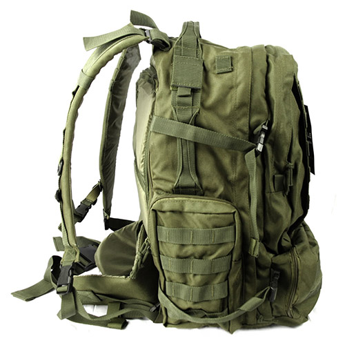 Sac à dos d'assaut modulaire plus grand, dit « trois jours », larges bretelles confortablement rembourrées avec boucle thoracique, boucles Fastex pour pouvoir se débarrasser du sac à dos en cas d'urgence et œillets pour fixer l'équipement. Plus d'informations