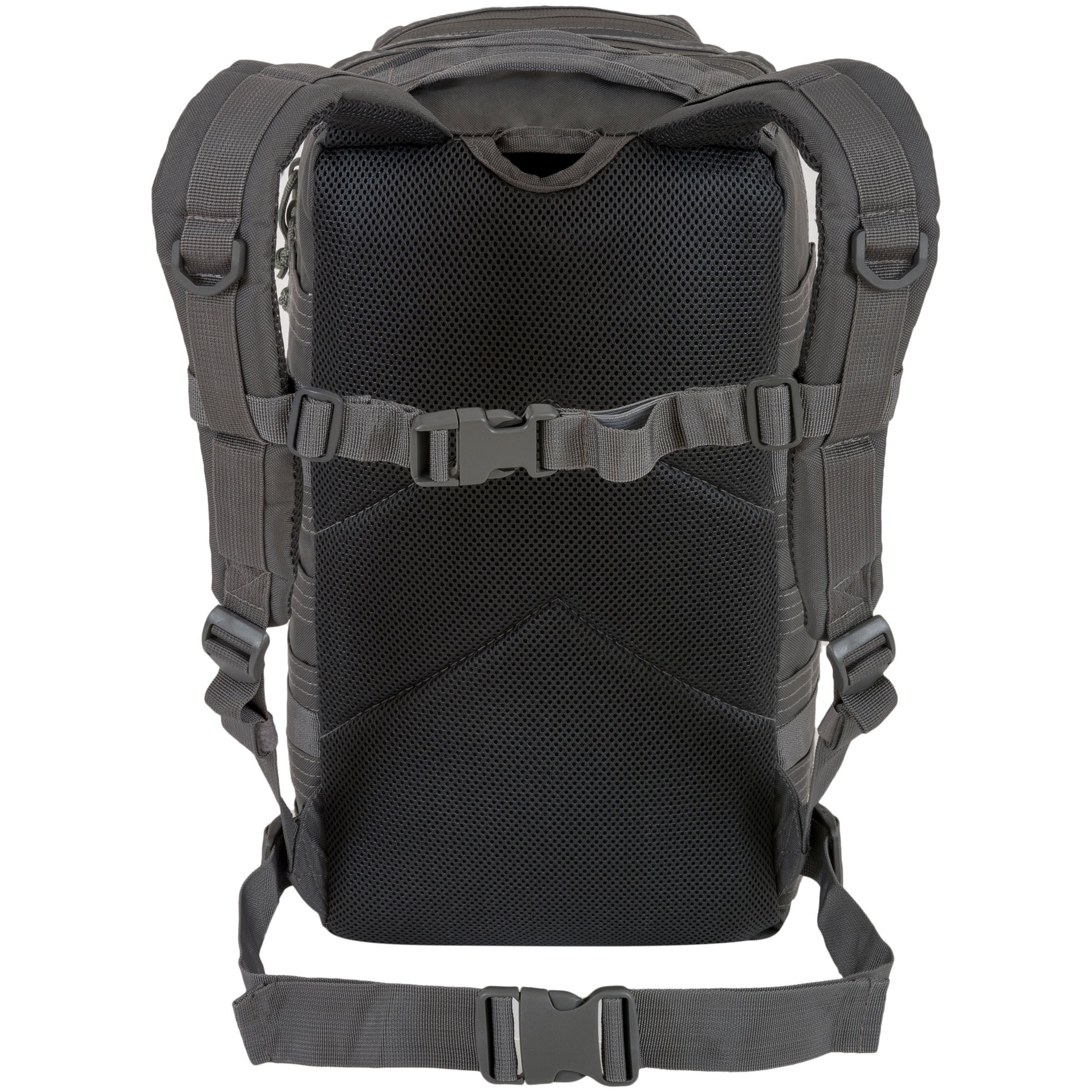 Les bretelles du sac à dos sont anatomiquement incurvées, réglables en hauteur, équipées de passants en plastique et agréablement rembourrées de maille 3D. La sangle pectorale est élastique et se ferme à l'aide d'une boucle en plastique. Le dos du sac à dos est généreusement rembourré. Dans la partie supérieure du sac à dos, vous trouverez une poignée de transport résistante. Sur les côtés, vous trouverez un système de fixation modulaire MOLLE/PALS complété par des sangles de compression avec des boucles en plastique. À l'avant du sac à dos se trouvent deux poches décalées. La poche avant inférieure est équipée d'un autre système de fixation modulaire MOLLE/PALS, tandis que la poche supérieure est recouverte d'un panneau velcro pour vos écussons VELCRO. Les deux compartiments principaux du sac à dos sont accessibles grâce à des fermetures éclair à double sens avec des tirettes proéminentes et contiennent plusieurs compartiments pratiques pour organiser facilement votre équipement.