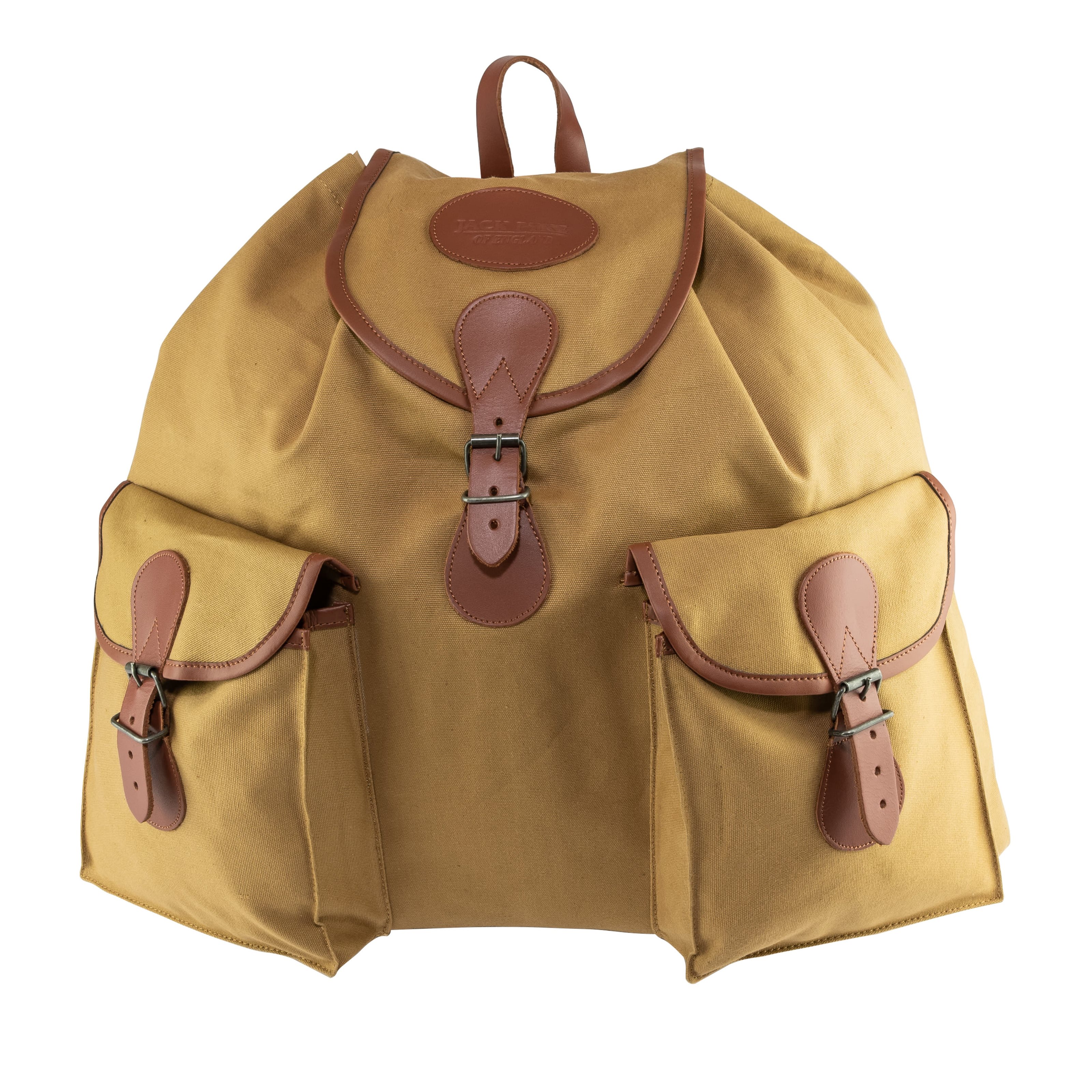 Sac à dos en toile de grand volume, fabriqué en toile de coton, résistant à l'usure et très facile à nettoyer. Les bretelles sont en cuir et réglables dans leur partie inférieure à l'aide d'une boucle simple. Le dessus du sac à dos est muni d'une poignée de transport simple. Les deux poches avant décalées sont idéales pour ranger les objets que vous souhaitez avoir rapidement à portée de main. Les poches sont recouvertes de rabats avec une fermeture en cuir. Le compartiment principal n'est pas divisé et son accès est également recouvert d'un rabat.