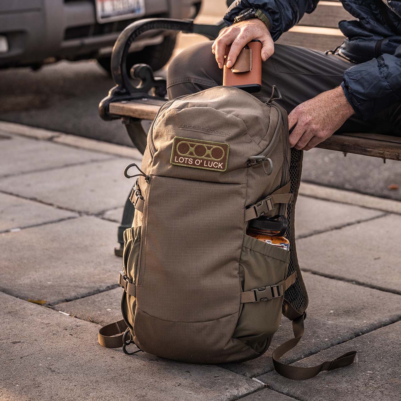 Les bretelles sont généreusement rembourrées avec un filet 3D, elles sont réglables en hauteur et équipées de passants pour le tuyau d'une poche à eau. Le dos est fortement rembourré afin de maximiser le confort même lorsque vous transportez un équipement lourd. La ceinture lombaire n'est pas fournie avec le sac à dos, mais elle peut être achetée séparément si nécessaire et fixée au rembourrage inférieur traversant. Sur les côtés, vous trouverez des poches idéales pour ranger des bouteilles d'eau. Les équipements plus volumineux peuvent être fixés dans ces poches à l'aide d'une paire de sangles de compression à boucles en plastique. À l'avant du sac à dos, vous trouverez une poche plate accessible par une fermeture éclair. Elle est idéale pour ranger du matériel plat ou des documents. Au-dessus de la poche, vous trouverez le rabat d'accès au compartiment principal. Celui-ci est équipé d'un panneau Velcro assez grand pour vos écussons VELCRO et d'une poche supérieure pour les petits objets que vous devez avoir rapidement à portée de main. Le compartiment principal comprend un compartiment assez grand destiné à transporter un ordinateur portable jusqu'à 17 pouces ou une poche à eau d'une capacité de trois litres. La poche peut également être fixée à l'aide d'une petite boucle en plastique. Derrière le compartiment principal, vous trouverez un compartiment entièrement zippé et doublé de molleton doux. Vous pouvez l'utiliser pour fixer des inserts et des organiseurs à velcro. Ce compartiment peut également être utilisé pour transporter une arme à feu démontée si nécessaire. Le fond du sac à dos est renforcé.