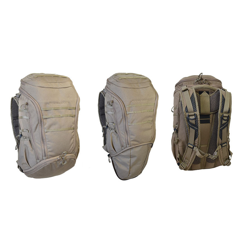 Sac à dos à compartiment unique avec armature en polycarbonate, permettant le transport discret d'armes à feu courtes et longues. La conception subtile des poches extérieures ne perturbe pas les lignes épurées du sac à dos. Les parois latérales du sac à dos sont rembourrées, ce qui lui permet de conserver sa forme même lorsqu'il est à moitié vide. La fermeture du compartiment principal à l'aide d'une fermeture éclair à double sens combine les avantages d'un remplissage par le haut et par l'avant pour un accès facile aux objets transportés. Il s'agit essentiellement d'une variante du modèle Switchblade, complétée par la possibilité d'allonger la partie inférieure.