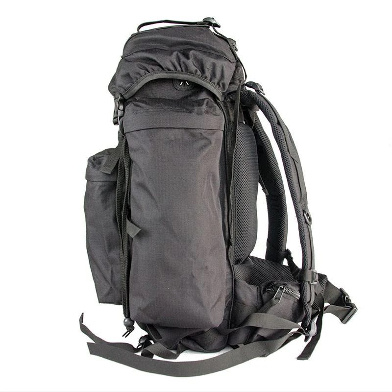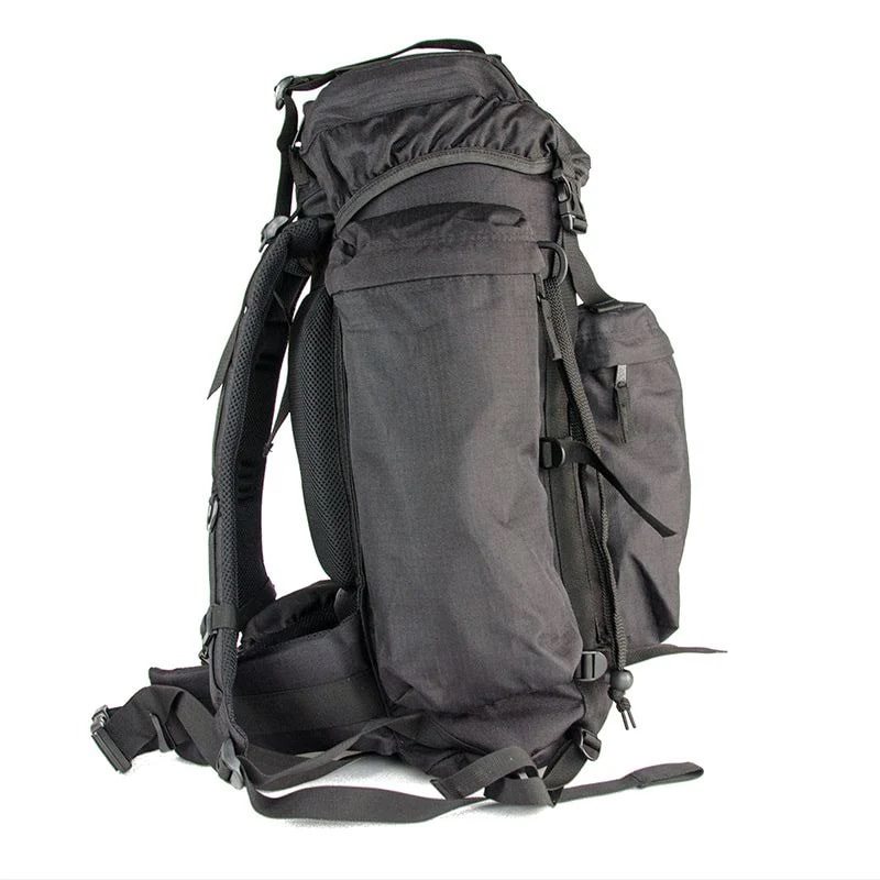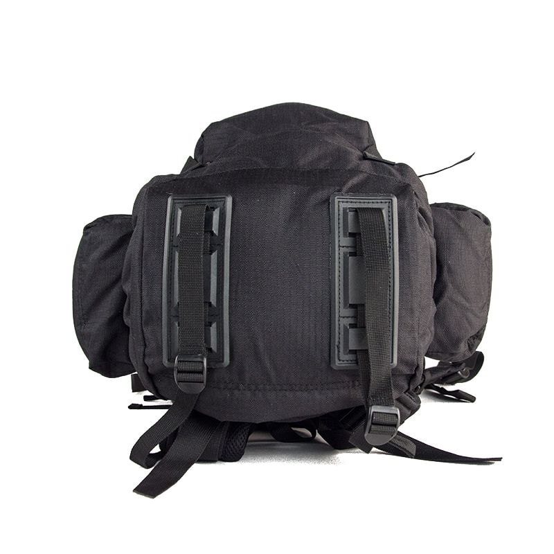 Sac à dos de taille moyenne à chargement par le haut pour usage militaire et civil. Le rabat supérieur est équipé d'une grande poche extérieure et d'une petite poche intérieure à fermeture éclair. À l'intérieur du sac à dos, on trouve un compartiment pour une poche à eau et une ouverture pour faire passer le tuyau. Le sac à dos dispose de deux grandes poches latérales et d'une poche frontale, également fermées par des fermetures éclair. Pour fixer d'autres équipements, il est possible d'utiliser les sangles de fixation sur le rabat et le fond du sac à dos, ainsi que les anneaux en D et les boucles sur la face avant. Une housse de pluie intégrée se trouve dans la petite poche au fond du sac à dos. Le dos, les sangles lombaires et les bretelles sont largement rembourrés avec un filet 3D.
