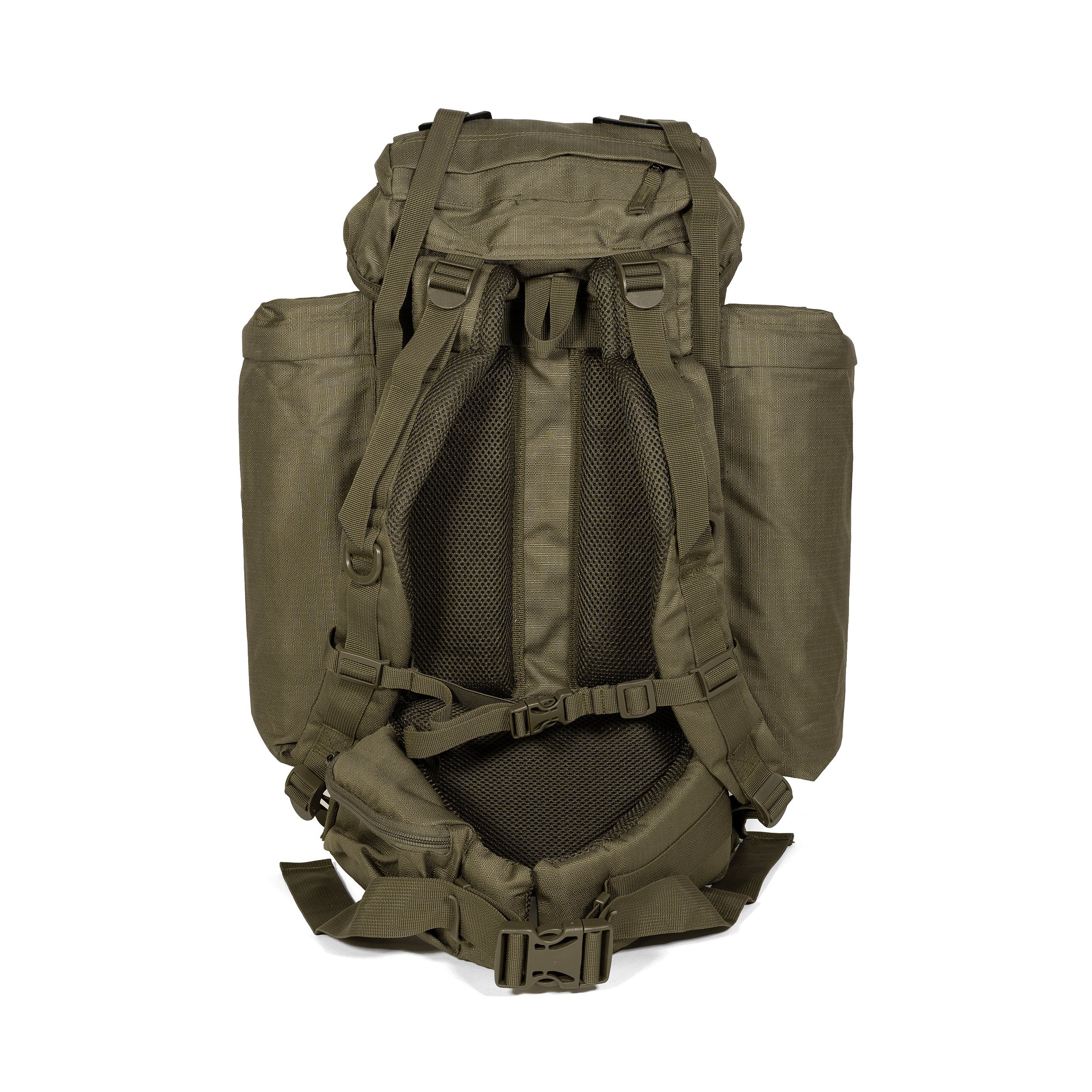 Sac à dos de taille moyenne à chargement par le haut pour usage militaire et civil. Le rabat supérieur est équipé d'une grande poche extérieure et d'une petite poche intérieure à fermeture éclair. À l'intérieur du sac à dos, on trouve un compartiment pour une poche à eau et une ouverture pour faire passer le tuyau. Le sac à dos dispose de deux grandes poches latérales et d'une poche frontale, également fermées par des fermetures éclair. Pour fixer d'autres équipements, il est possible d'utiliser les sangles de fixation sur le rabat et le fond du sac à dos, ainsi que les anneaux en D et les boucles sur la face avant. Une housse de pluie intégrée se trouve dans la petite poche au fond du sac à dos. Le dos, les sangles lombaires et les bretelles sont largement rembourrés avec un filet 3D.
