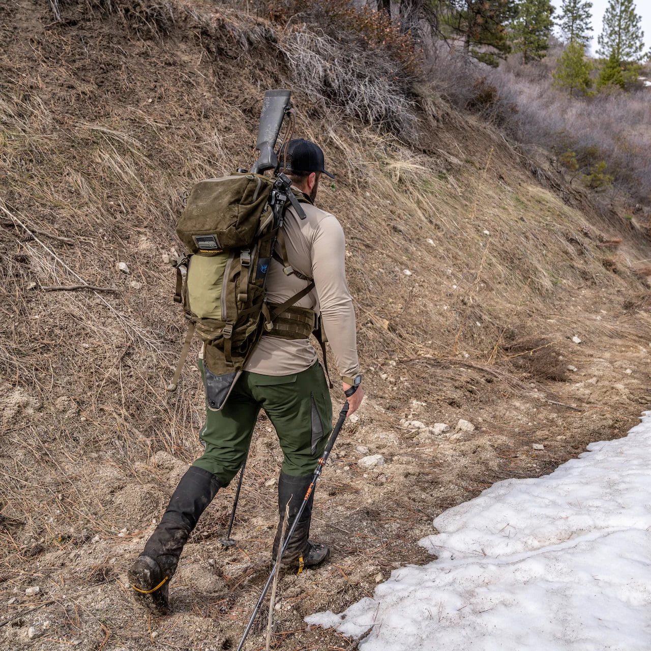 Sac à dos de chasse unique qui permet de transporter facilement des charges lourdes grâce à la possibilité de séparer le sac à dos du système de portage. Il dispose d'un étui intégré pour les armes longues et d'un rabat spacieux et réglable en hauteur. Le sac à dos est fabriqué dans un matériau micro-polaire spécial, silencieux et très résistant.