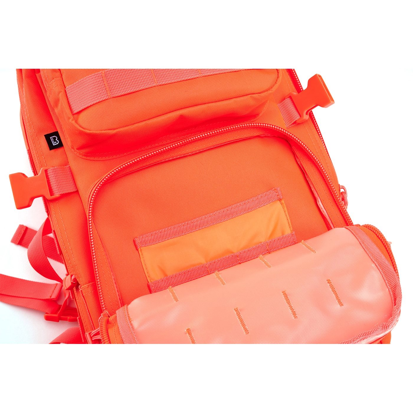 Le dos du sac à dos est légèrement rembourré, il comporte une poche pouvant accueillir une poche à eau et est muni d'une poignée dans sa partie supérieure pour faciliter le transport. Les bretelles sont réglables en hauteur, anatomiques, rembourrées, munies d'une maille 3D et d'une sangle thoracique élastique fermée par une boucle Fastex en plastique. La ceinture abdominale est simple et également fermée par une boucle Fastex. Sur les côtés du sac à dos se trouve un large système d'attache MOLLE/PALS servant à fixer des pochettes compatibles et d'autres équipements. En plus du système d'attache, il y a également deux sangles de compression sur le côté.