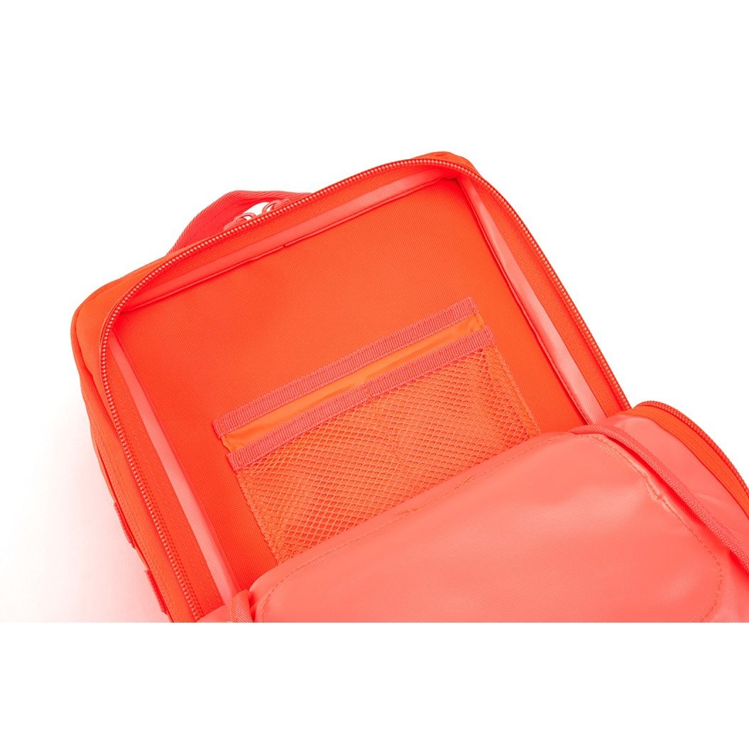 Pour ranger votre équipement, vous disposez de deux grands compartiments et de deux poches plus petites. Les compartiments et les poches sont accessibles grâce à des fermetures éclair à double sens équipées de tirettes. La poche supérieure plus petite n'est pas compartimentée, tandis que la poche inférieure contient un organiseur clair. À l'intérieur du compartiment principal, vous trouverez plusieurs poches pour ranger vos documents et autres petits objets. Au fond, vous trouverez deux autres sangles, idéales pour attacher par exemple une veste légère ou un matelas de sol.
