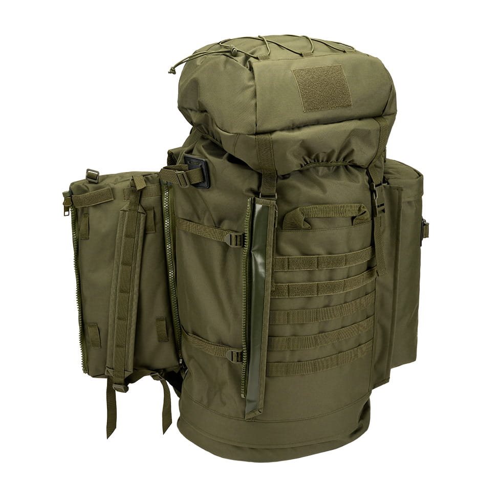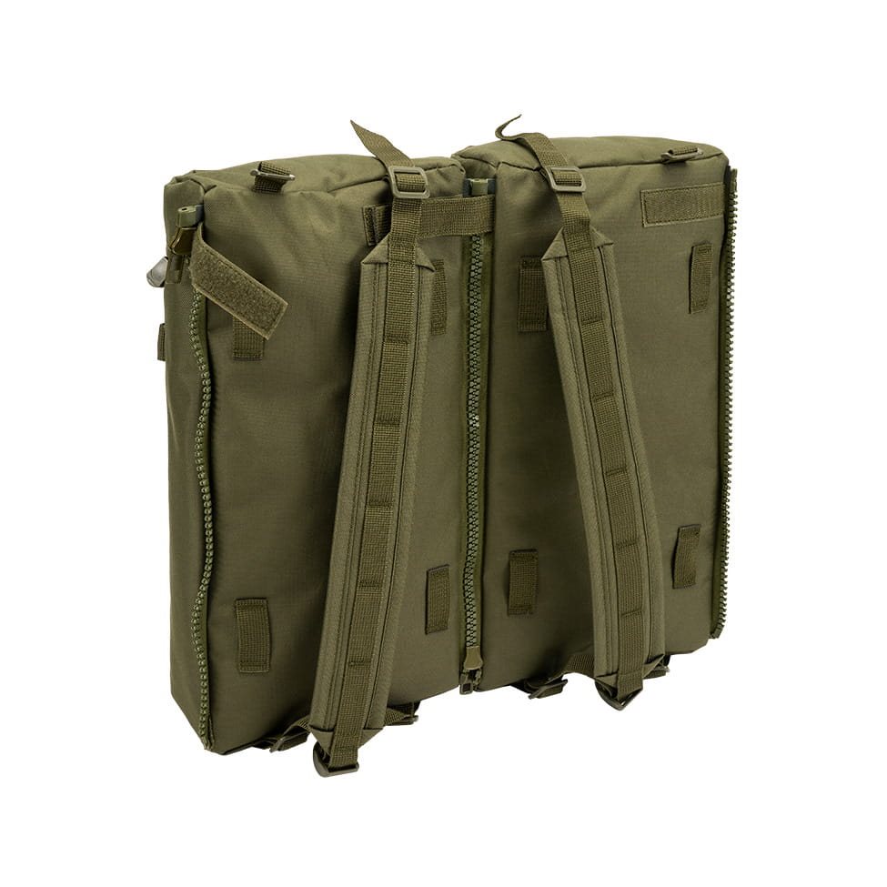 Les poches latérales peuvent être retirées, reliées entre elles et transformées en sac à dos séparé. Le sac à dos est également équipé d'un système de fixation MOLLE/PALS pour attacher des pochettes et des accessoires compatibles. La partie inférieure du sac à dos est en outre équipée d'une fermeture éclair qui permet de l'ouvrir facilement et d'accéder rapidement à son contenu.