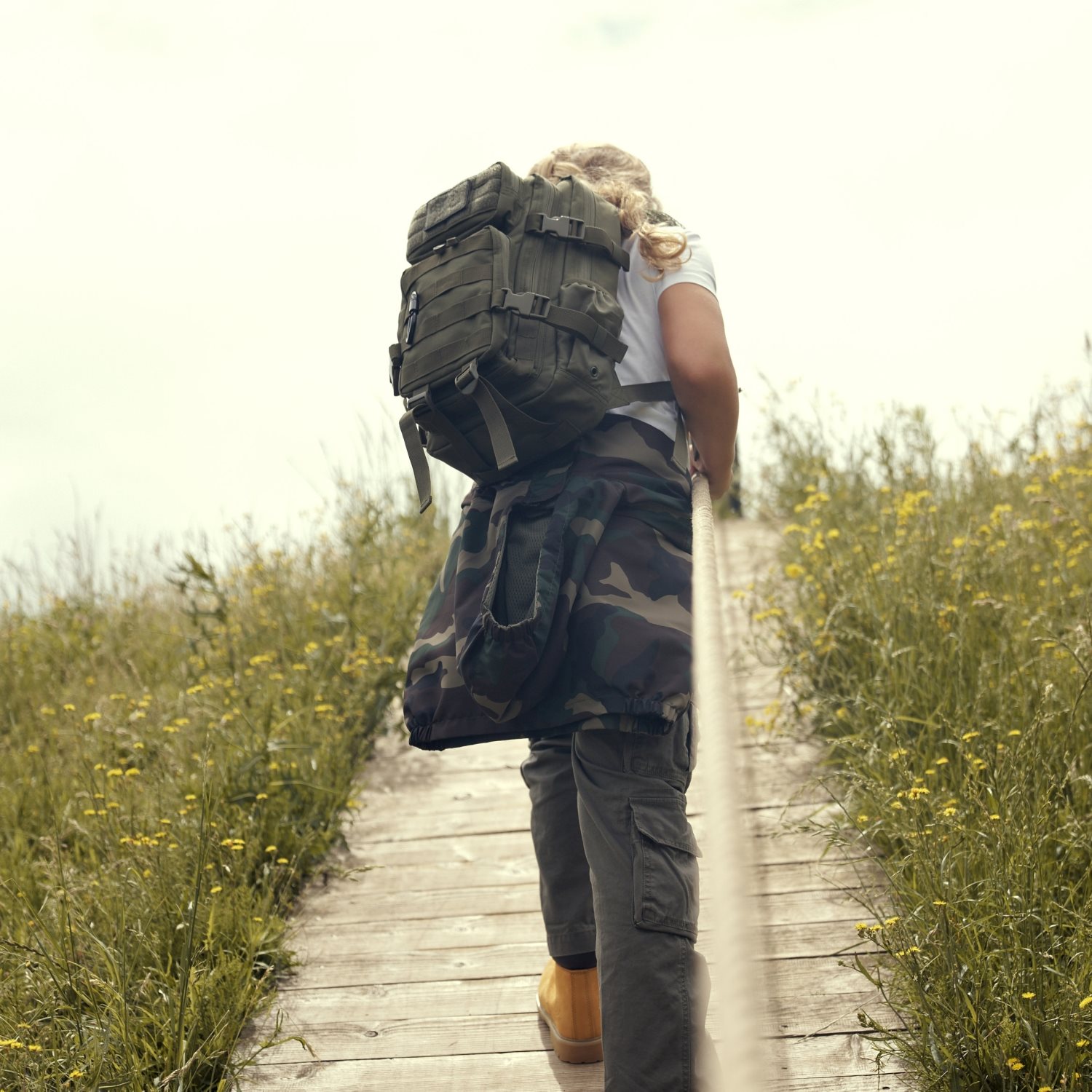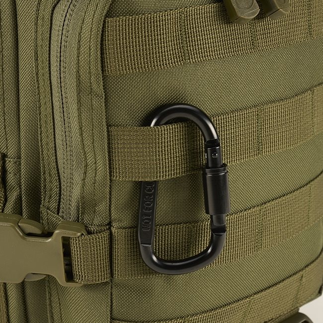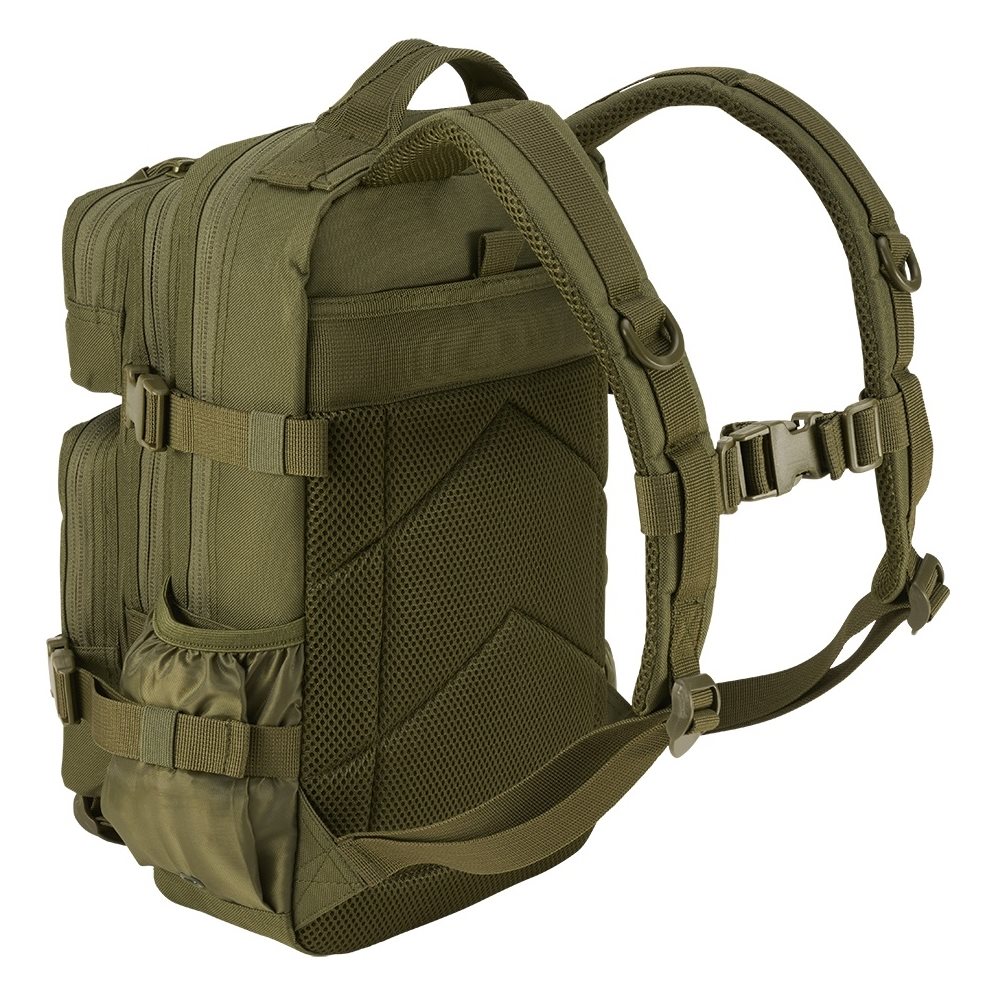 Sac à dos pour enfants fabriqué en polyester 600D résistant. Les sangles pectorales sont rembourrées avec une maille 3D et sont équipées d'anneaux en D en plastique et d'une sangle pectorale réglable en hauteur avec une boucle en plastique. Le dos du sac à dos est également rembourré et équipé d'une poche plate sécurisée par du velcro. Sur les côtés se trouvent des poches adaptées aux bouteilles d'eau, parapluies, etc., qui sont sécurisées par des bords élastiques. Des deux côtés se trouvent deux sangles de compression sécurisées par une boucle en plastique. L'espace de rangement est divisé en deux grands compartiments et deux poches extérieures, tous accessibles par des fermetures éclair à double sens. La poche avant supérieure est fermée par une bande Velcro, la poche avant inférieure est fermée par un système MOLLE/PALS. Les deux poches avant sont équipées d'un organiseur simple. Le compartiment principal arrière comprend un compartiment fermé par une fermeture éclair. Le sac à dos est livré avec un mousqueton métallique.