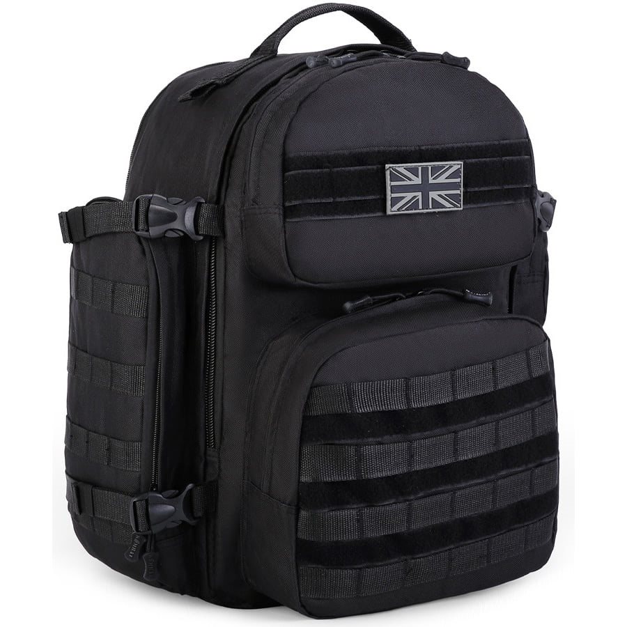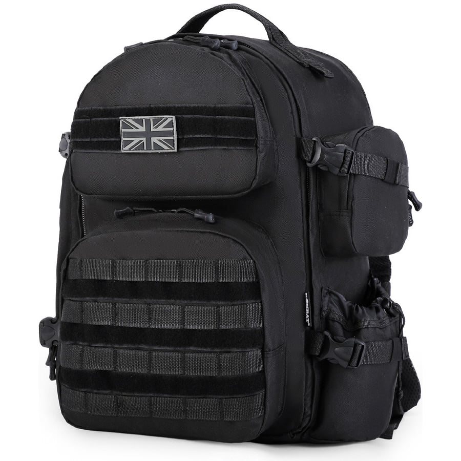 Sac à dos extensible compatible avec le système de fixation modulaire MOLLE/PALS. Sa capacité de base est d'environ 35 litres, mais en ouvrant la fermeture éclair arrière, vous obtenez environ 10 litres d'espace de rangement supplémentaires. Le sac à dos est fabriqué en polyester résistant avec un traitement déperlant.