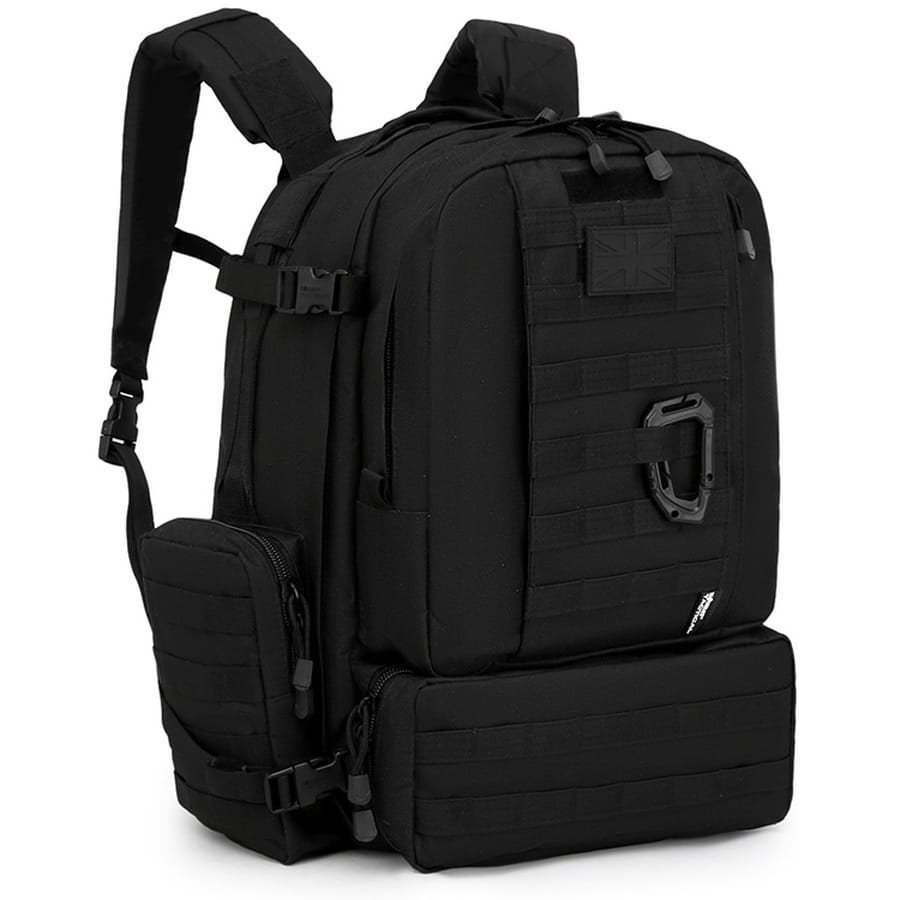 Le Viking Patrol Pack de la marque britannique Kombat est un sac à dos de 60 litres pour 3 jours, fabriqué dans un matériau résistant. Ce sac à dos tactique d'une capacité relativement importante convient à toutes les activités de plein air. Il est confortable et pratique. Grâce à ses sangles latérales avec boucles en plastique, vous pouvez adapter sa capacité à vos besoins actuels. Les sangles MOLLE à l'avant et sur les côtés permettent d'attacher des accessoires supplémentaires.