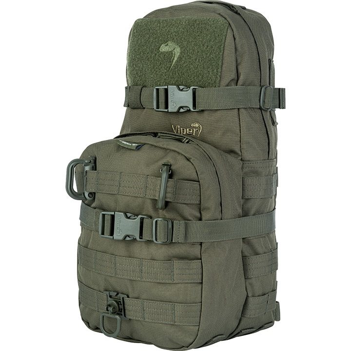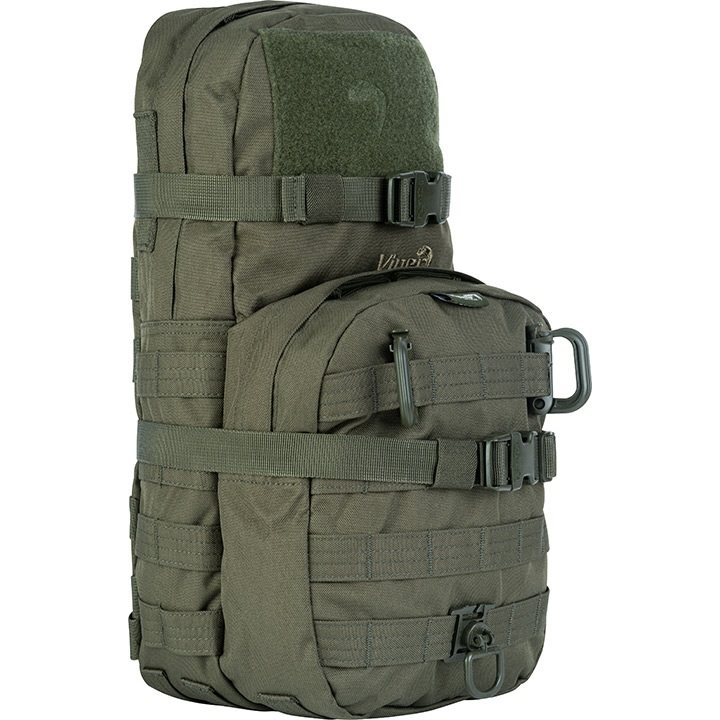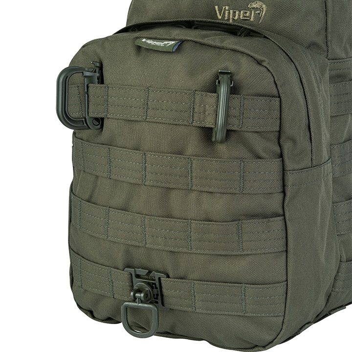 Le sac à dos VIPER ONE DAY peut être porté seul comme un sac à dos classique ou attaché au système MOLLE d'un sac à dos plus grand comme une grande poche séparée. Modèle vert.