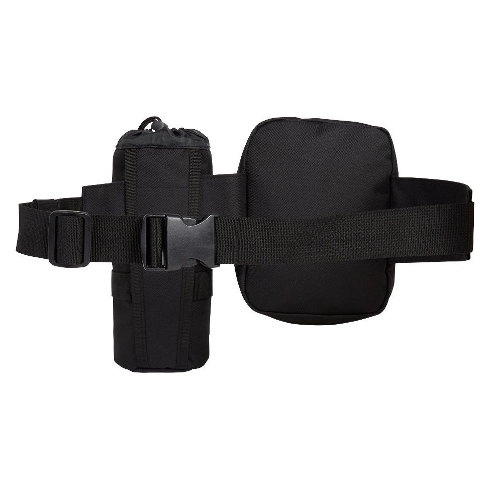 Sac banane résistant combiné à une ceinture tactique et un étui pour bouteille. Les trois produits sont fabriqués en polyester 600D, qui offre un excellent rapport résistance/poids.