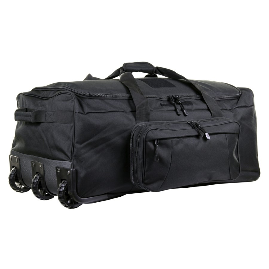 Sur le rabat du sac se trouve un panneau velcro d'environ 95 x 95 mm et un autre plus petit d'environ 120 x 20 mm, sur lesquels vous pouvez fixer des écussons velcro pour une meilleure identification ou simplement pour le plaisir. . Le fond du sac est renforcé et caoutchouté avec 2 patins en plastique afin que le sac ne soit pas endommagé ou mouillé s'il est posé par terre de manière moins soigneuse. Il peut être transporté à la main ou sur roulettes.