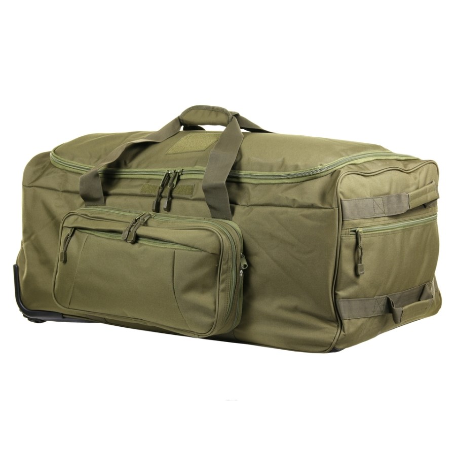 Sac de transport/voyage spacieux à roulettes, dont la fonctionnalité surpasse celle de la plupart des valises. Il est compact, solide, modulable et dispose de nombreuses poches et espaces de rangement. Vous pouvez le porter à la main ou le transporter facilement grâce à ses trois grandes roulettes. Le sac est entièrement rembourré. L'espace principal peut être divisé par une cloison à velcro, qui occupe environ les deux tiers de l'espace. Vous pouvez par exemple ranger vos chaussures séparément.