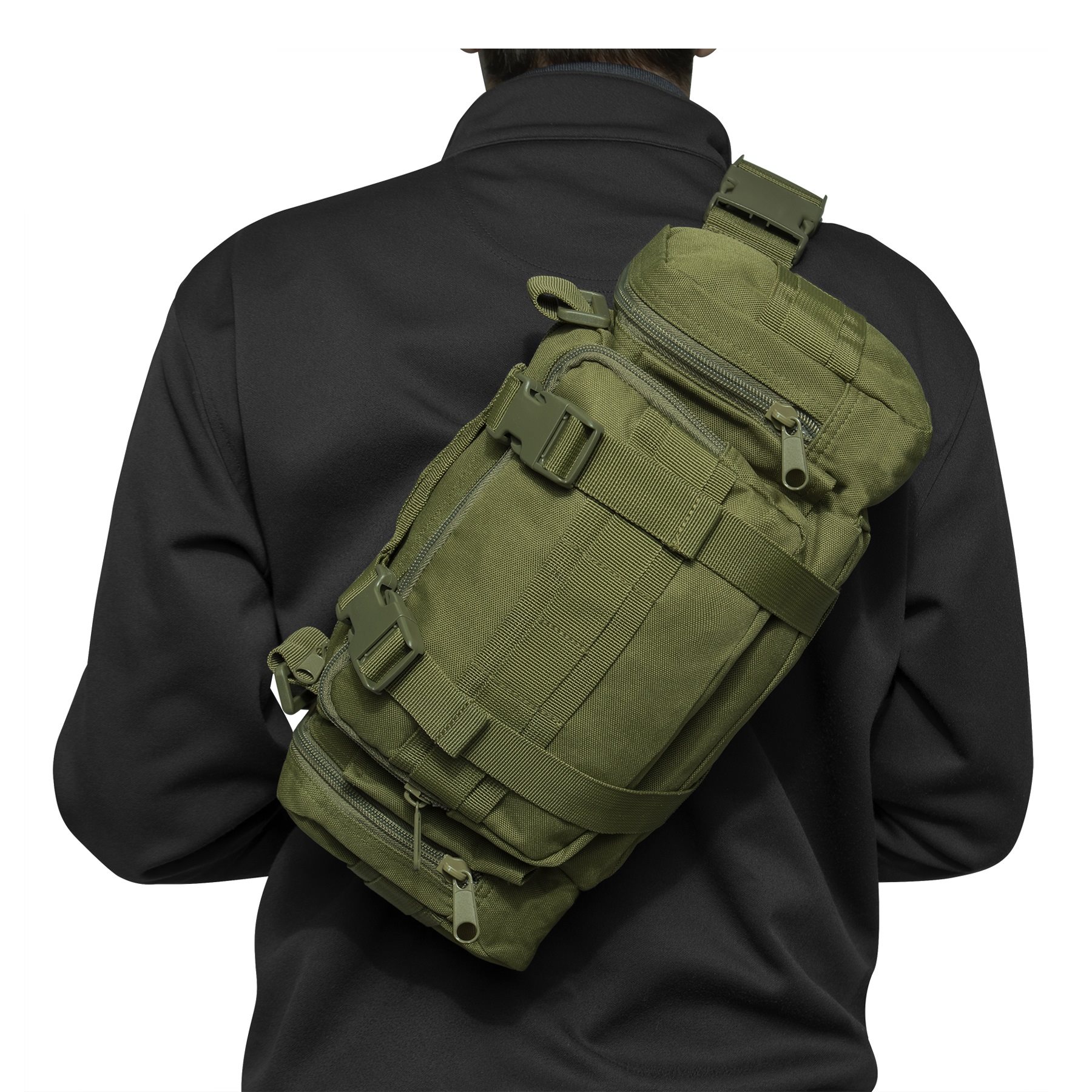 Petit sac pratique pouvant être porté à la main, à l'épaule, en bandoulière ou fixé à un sac à dos à l'aide du système MOLLE comme poche supplémentaire indépendante.