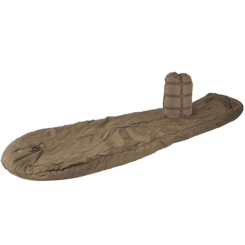 Sac de couchage original Allgemein II de l'armée allemande. Inspiré du modèle Carinthia Defence 4. Forme momie avec ouverture ronde pour le visage et cordon élastique. Fermeture par zip double sens au centre recouvert d'un rabat à velcro, doublure intérieure isolante pour éviter les pertes de chaleur. Conçu pour une taille maximale de 200 cm. Livré avec un sac de compression.