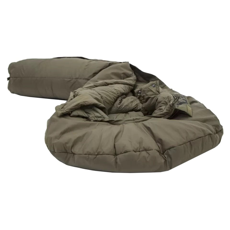 Sac de couchage professionnel de type momie utilisé par les unités spéciales de l'OTAN dans les conditions arctiques. Malgré son excellent confort thermique, il est relativement léger et facile à ranger.