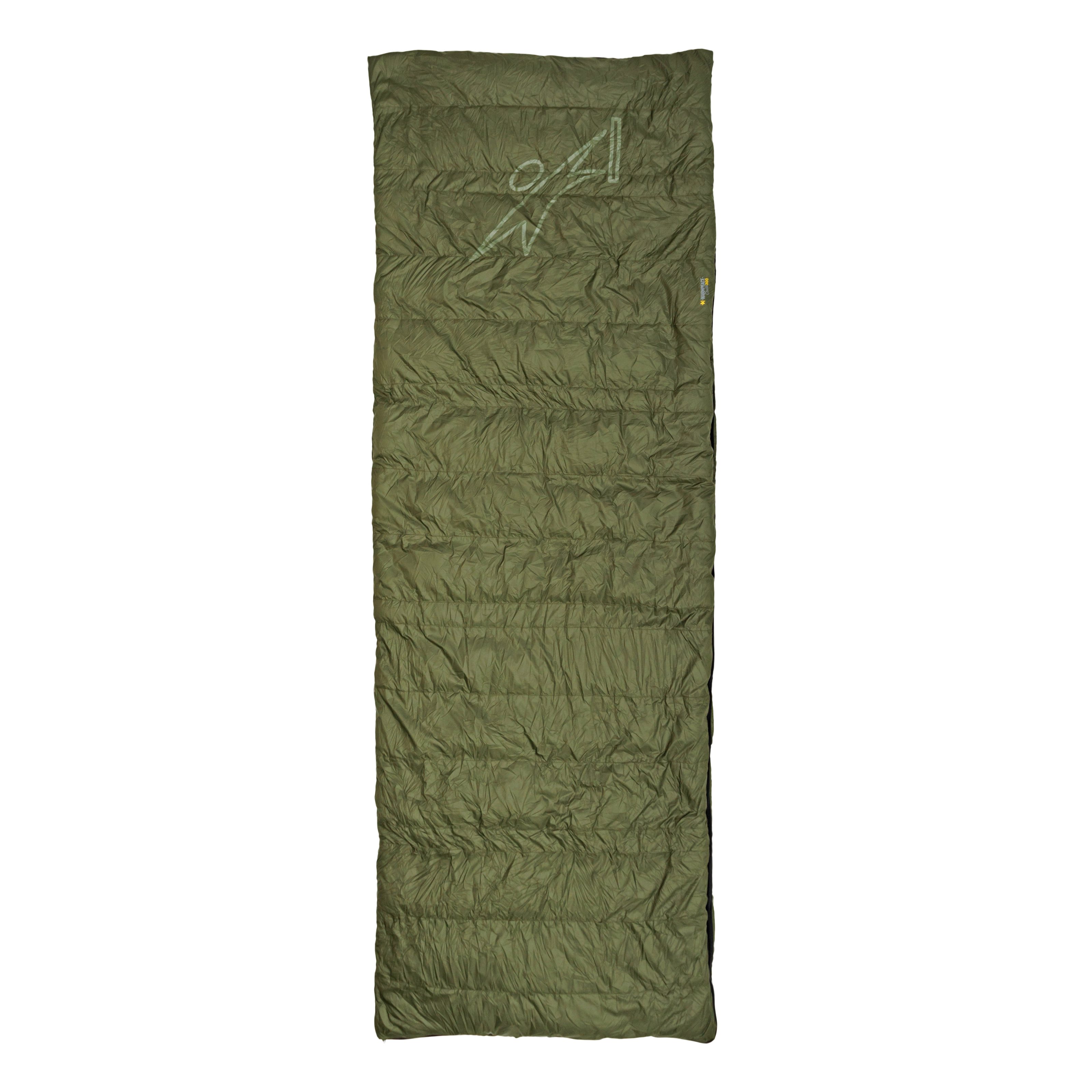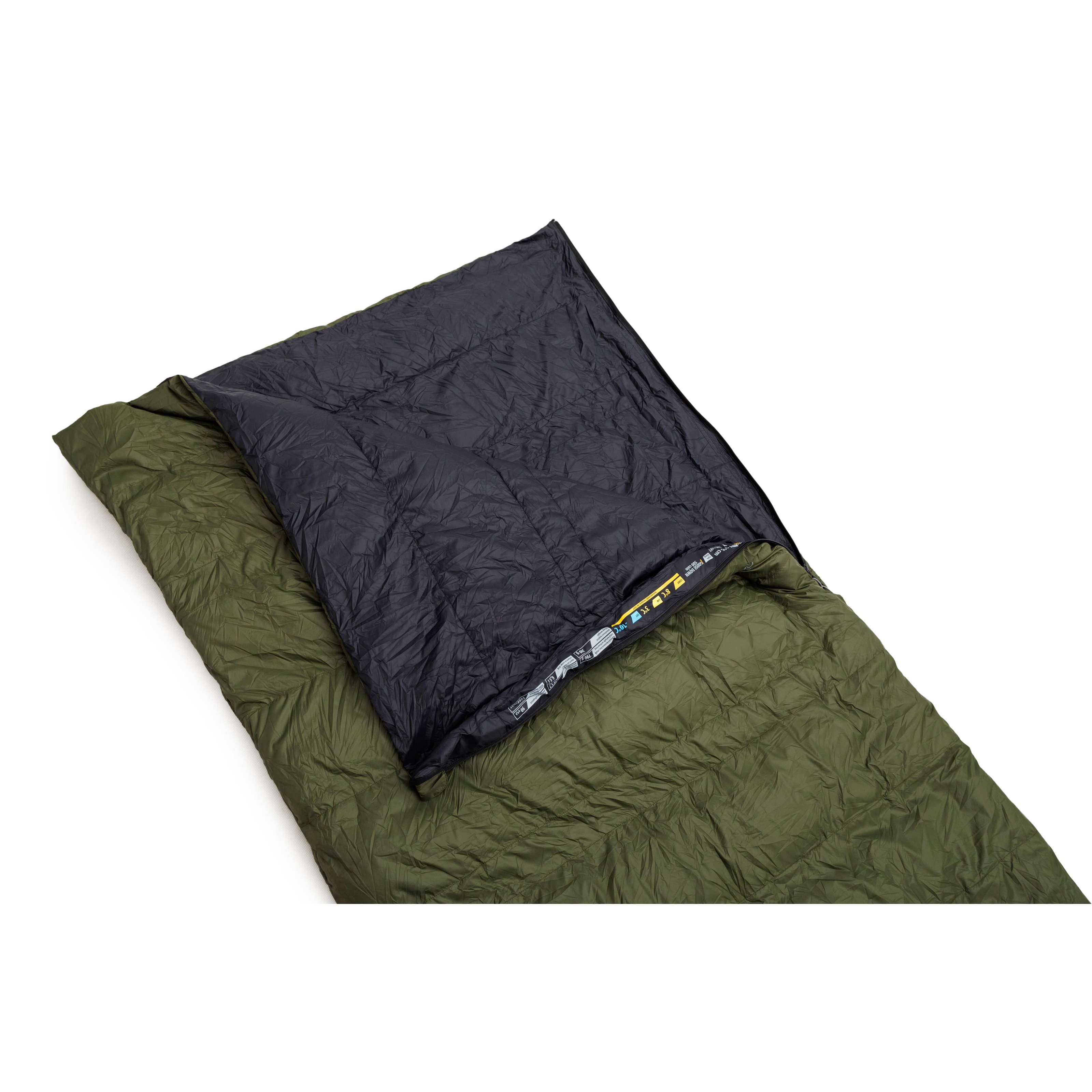 Sac de couchage universel en duvet, de forme strictement rectangulaire, conçu pour dormir en été à l'extérieur ou sous un toit de tente, dans un chalet, une voiture ou une cabine. Sa taille unique et l'orientation universelle de sa fermeture éclair permettent de l'utiliser facilement comme couverture ou de joindre deux sacs de couchage ensemble. Le sac de couchage est équipé de bretelles qui permettent de le fixer sur les épaules et de garder le corps au chaud même en position assise. Grâce à l'utilisation exclusive de matériaux recyclés, le Quilt 300 fait partie des produits respectueux de l'environnement.