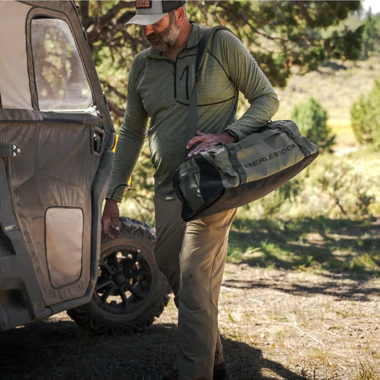 Sac de transport imperméable, conçu pour offrir une grande résistance et un accès facile au matériel transporté. Le fond et les parois latérales sont fabriqués en nylon 1000D extra-renforcé avec traitement TPU, le reste est en nylon rip-stop 500D avec TPU. Le sac est disponible en deux tailles, qui ne diffèrent que par le volume du compartiment principal.