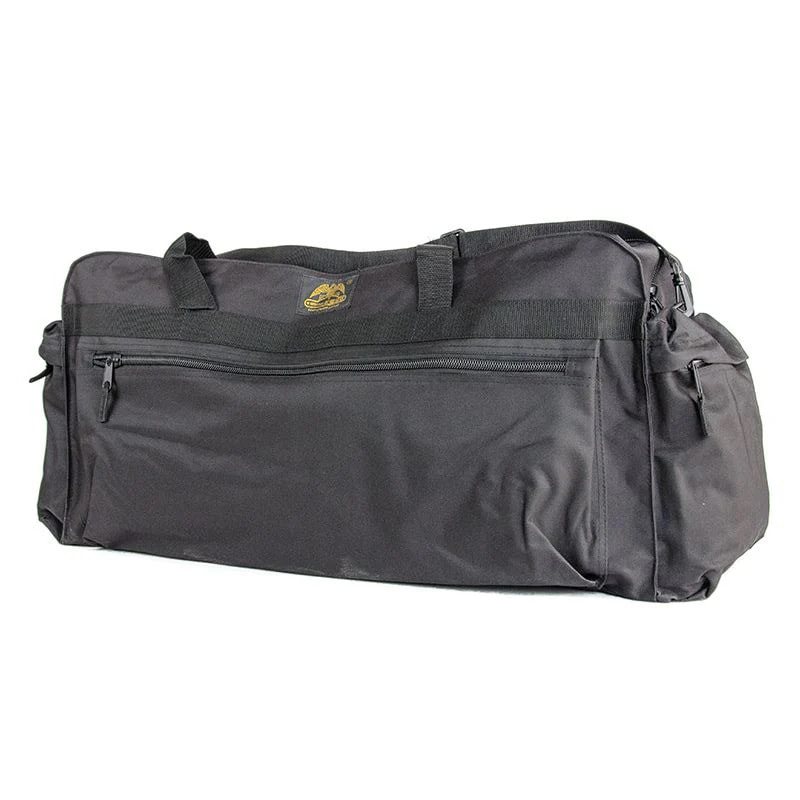 Sac de transport volumineux avec une structure renforcée. Il est fabriqué à partir de fermetures éclair extra-solides et de polyester résistant avec revêtement.