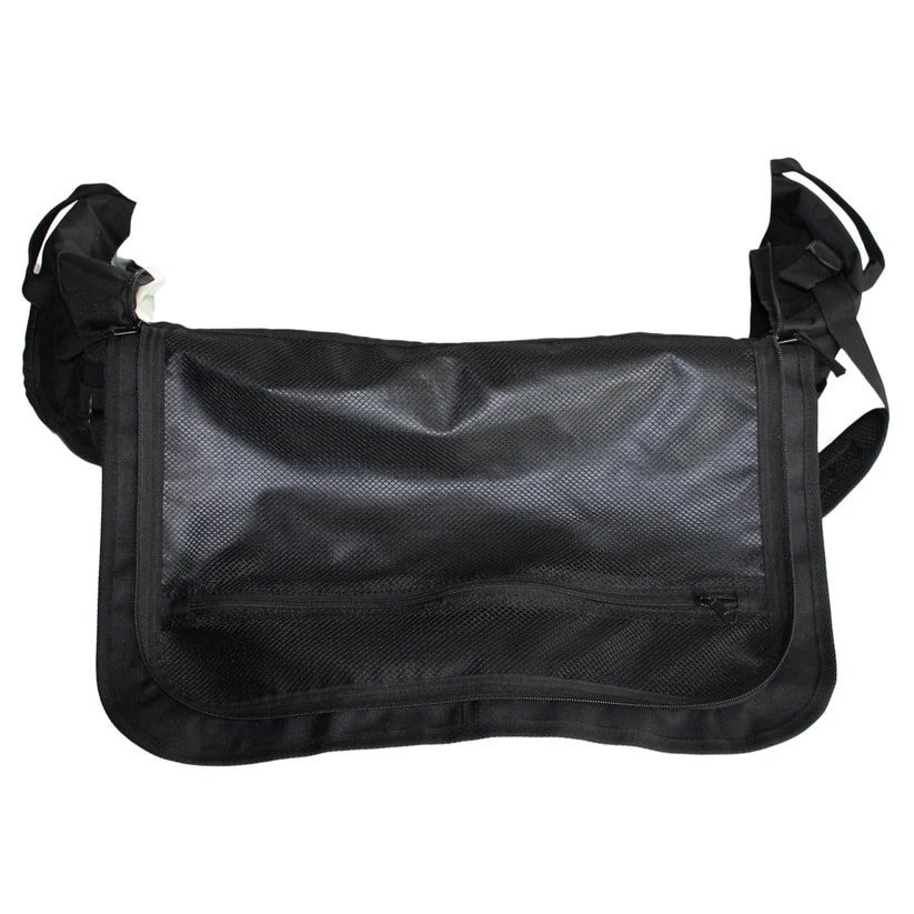 La partie supérieure du sac est équipée d'une poignée centrale, de deux bretelles amovibles en filet et de deux poignées latérales. Le pourtour du sac est cousu avec des œillets en tissu pour permettre la fixation d'autres équipements. Sur le côté du sac, vous trouverez un compartiment caché pour ranger vos chaussures. L'accès au compartiment principal est protégé par un rabat empêchant l'eau de pénétrer. Sous le rabat se trouve une poche en filet pratique.