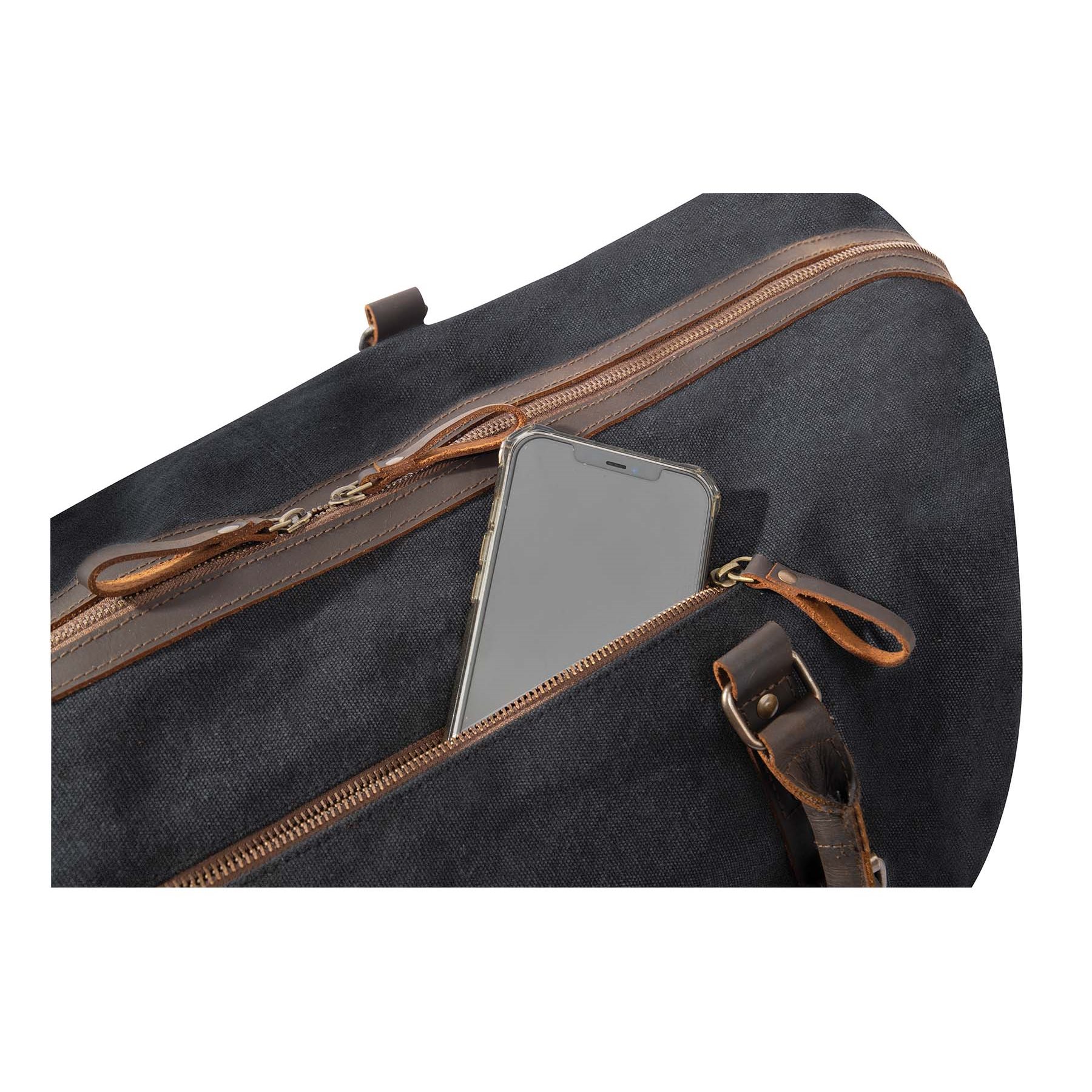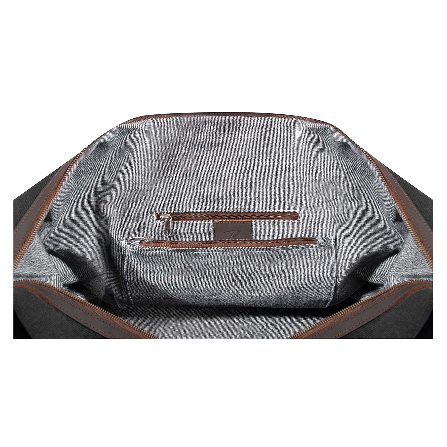 Sac de voyage très élégant avec des accessoires en cuir. Les éléments métalliques en laiton soulignent son aspect classique. Voyagez avec style.