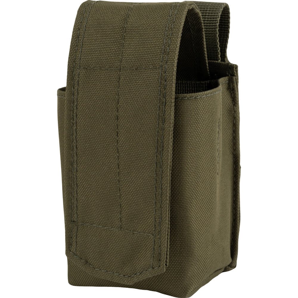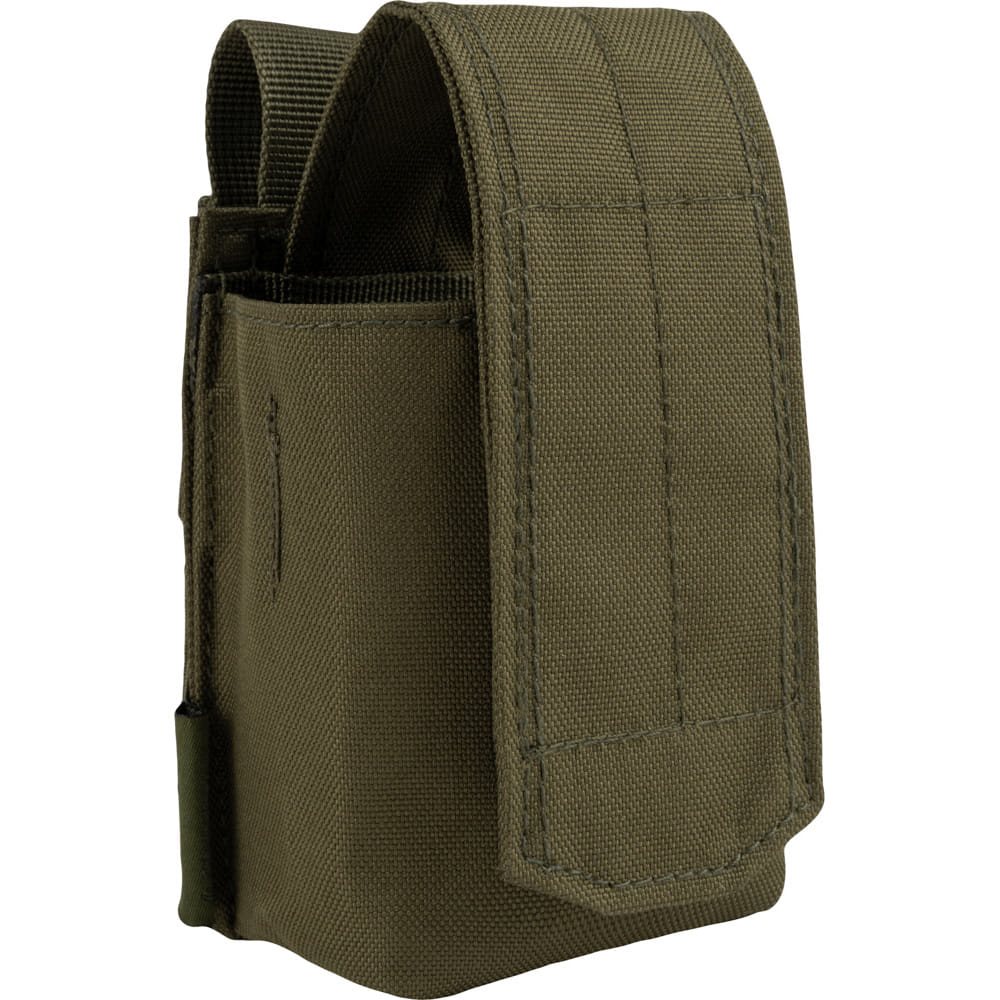 Pochette pour grenade, système PALS pour un placement flexible des poches et des pochettes, fermeture à scratch, matériau : 600D CORDURA, dimensions : environ 15-19 x 7 x 5 cm.