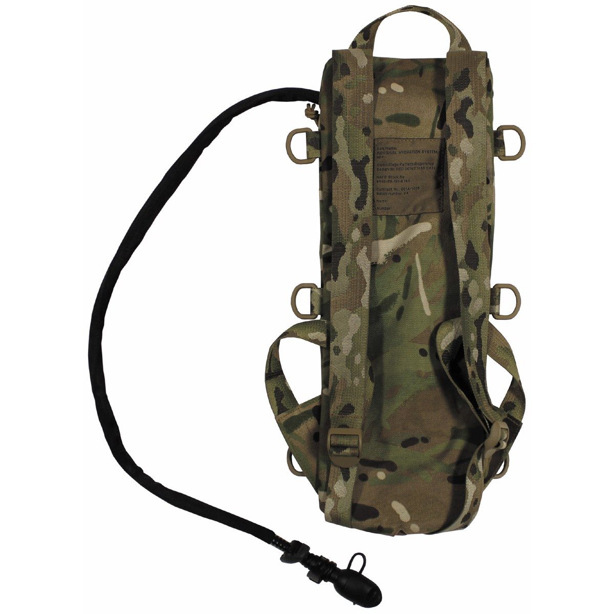 Sac à dos britannique original avec motif camouflage MTP, d'occasion, avec poche à eau à l'intérieur, neuve. Volume du sac : 2,5 l.