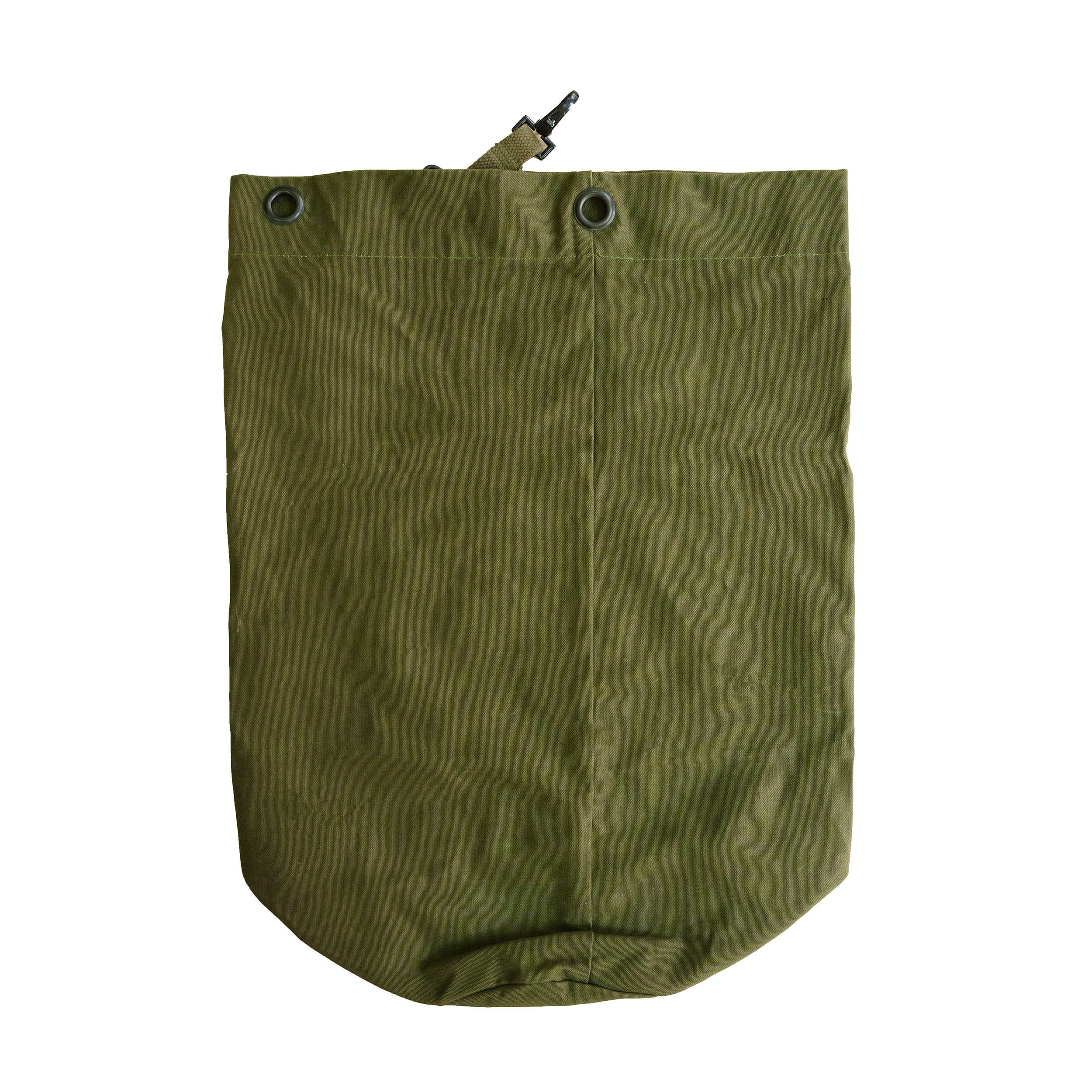 Sac marin original provenant d'une vente de l'armée néerlandaise. La longueur totale du sac est de 72 cm, le diamètre du fond est de 35 cm.