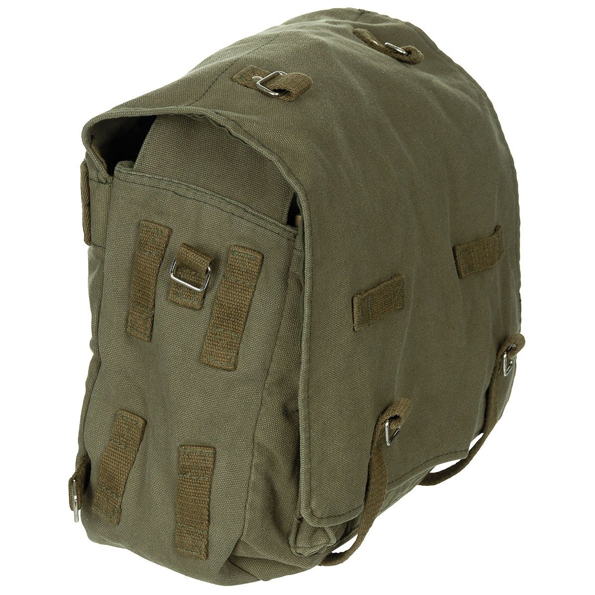 Sac à bandoulière de style militaire BW. Dimensions : environ 34 x 24 x 12 cm.