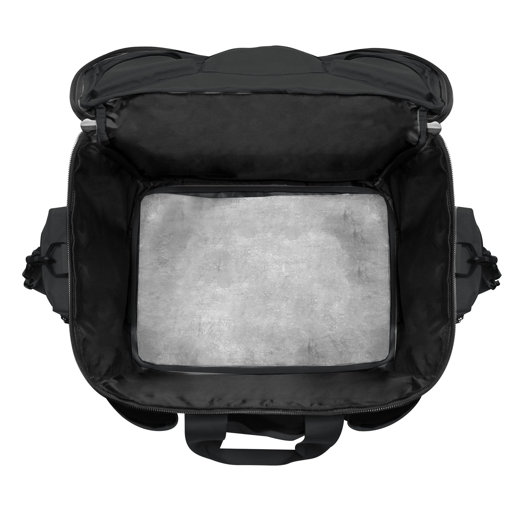 Sac de transport très spacieux, non seulement pour l'équipement de police. Grâce à ses renforts latéraux rigides, il conserve parfaitement sa forme rectangulaire.