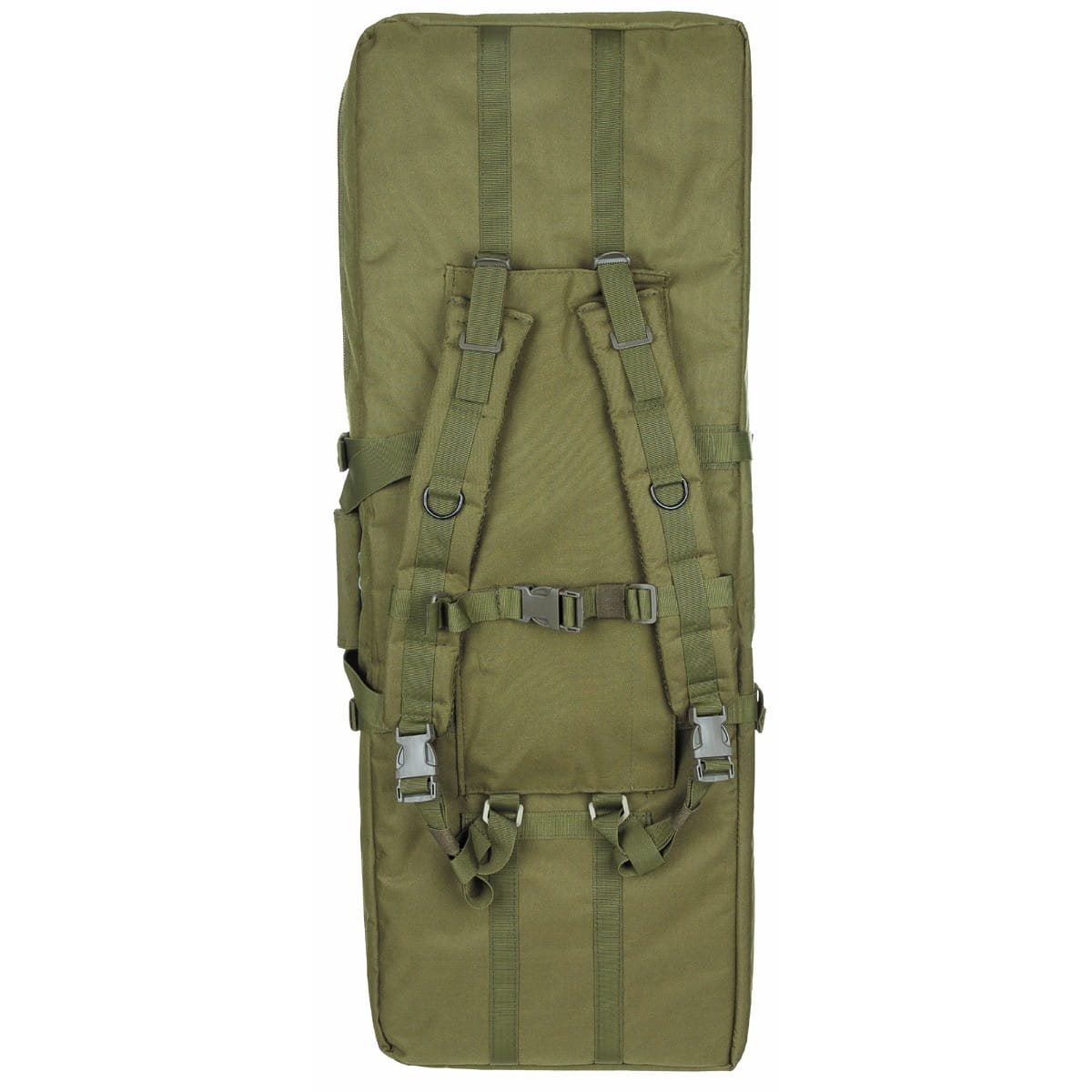 Grand étui pour armes permettant de transporter jusqu'à deux fusils longs et deux pistolets. L'étui peut être porté à la main ou à l'aide d'une bandoulière, et enfin sur le dos à l'aide de sangles facilement détachables.