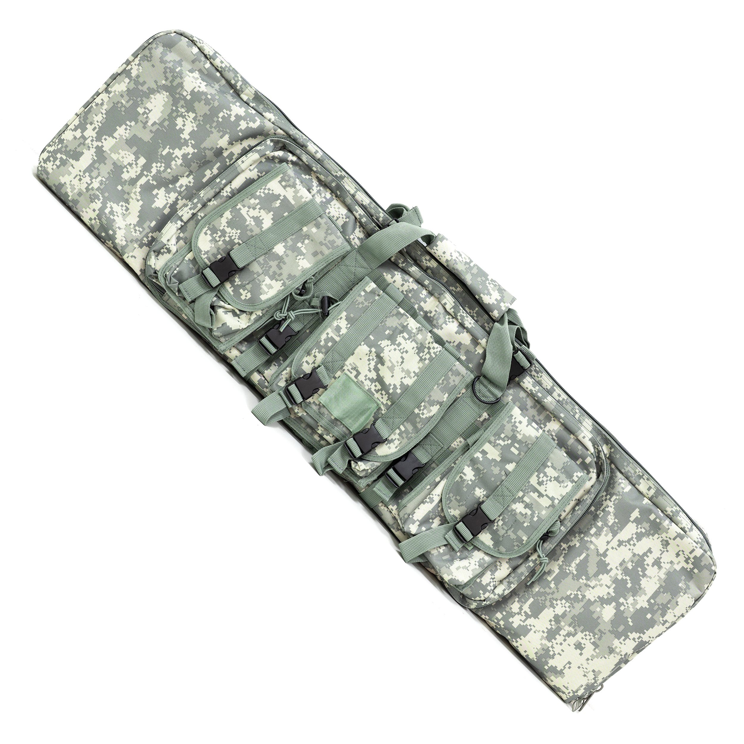 Étui modulaire pour arme. Une grande poche équipée de sangles Velcro pour fixer l'arme, fermable par fermeture éclair. Trois poches MOLLE à l'extérieur pour les accessoires. Deux grandes boîtes plates avec Velcro à l'arrière. Plus d'informations
