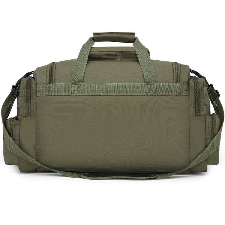 Les côtés du sac sont symétriques et comportent deux poches séparées accessibles par fermeture éclair. La poche supérieure est également équipée de deux rangées de sangles modulaires standard MOLLE/PALS.